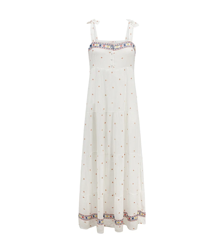 Длинное платье с вышитым ремнем женское хлопковое платье без рукавов, элегантное винтажное свободное платье макси с цветочным принтом, лето-осень 2021