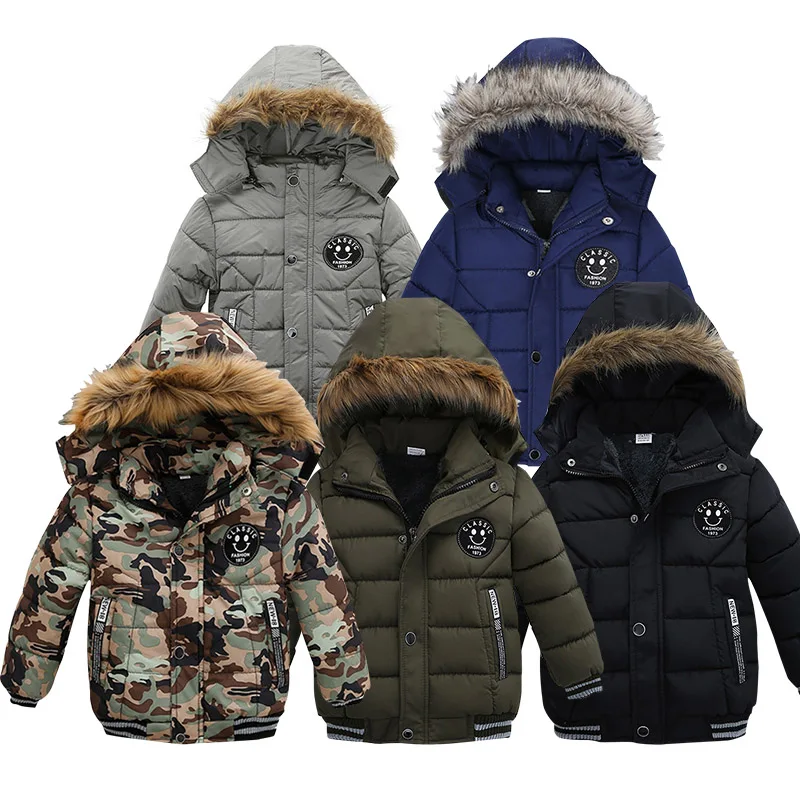 Новые детские толстые теплые хлопковые пальто теплая куртка с капюшоном верхняя одежда для мальчиков детская зимняя теплая куртка одежда для малышей От 2 до 6 лет