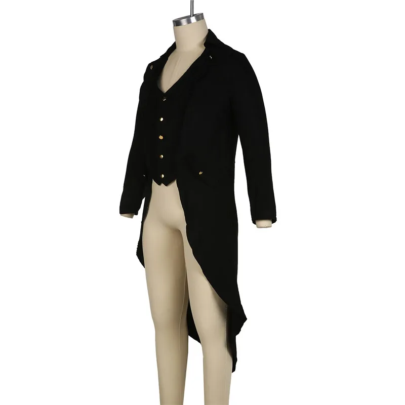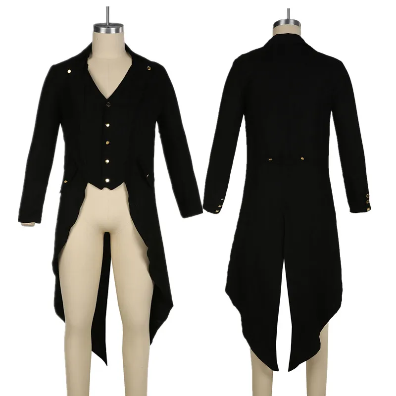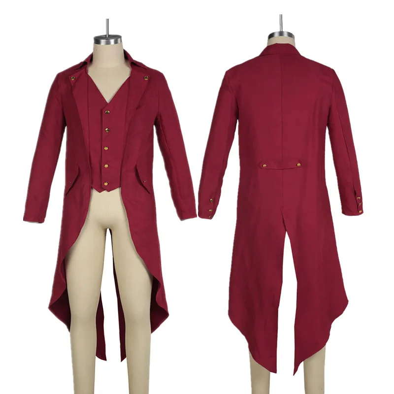 Мужские костюмы в викторианском стиле для взрослых, черная, красная искусственная куртка, плащ в стиле стимпанк, наряд, готическое пальто, униформа