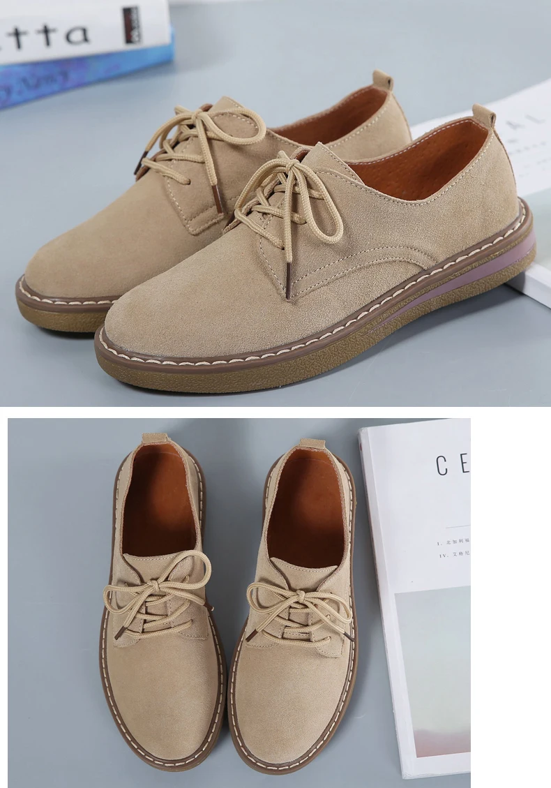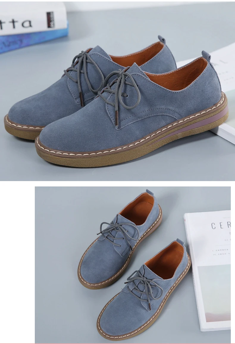 Dosrealженские туфли на плоской подошве; Замшевые оксфорды из коровьей кожи; Зимняя теплая обувь с мехом; Модная женская обувь на шнуровке; Повседневная обувь