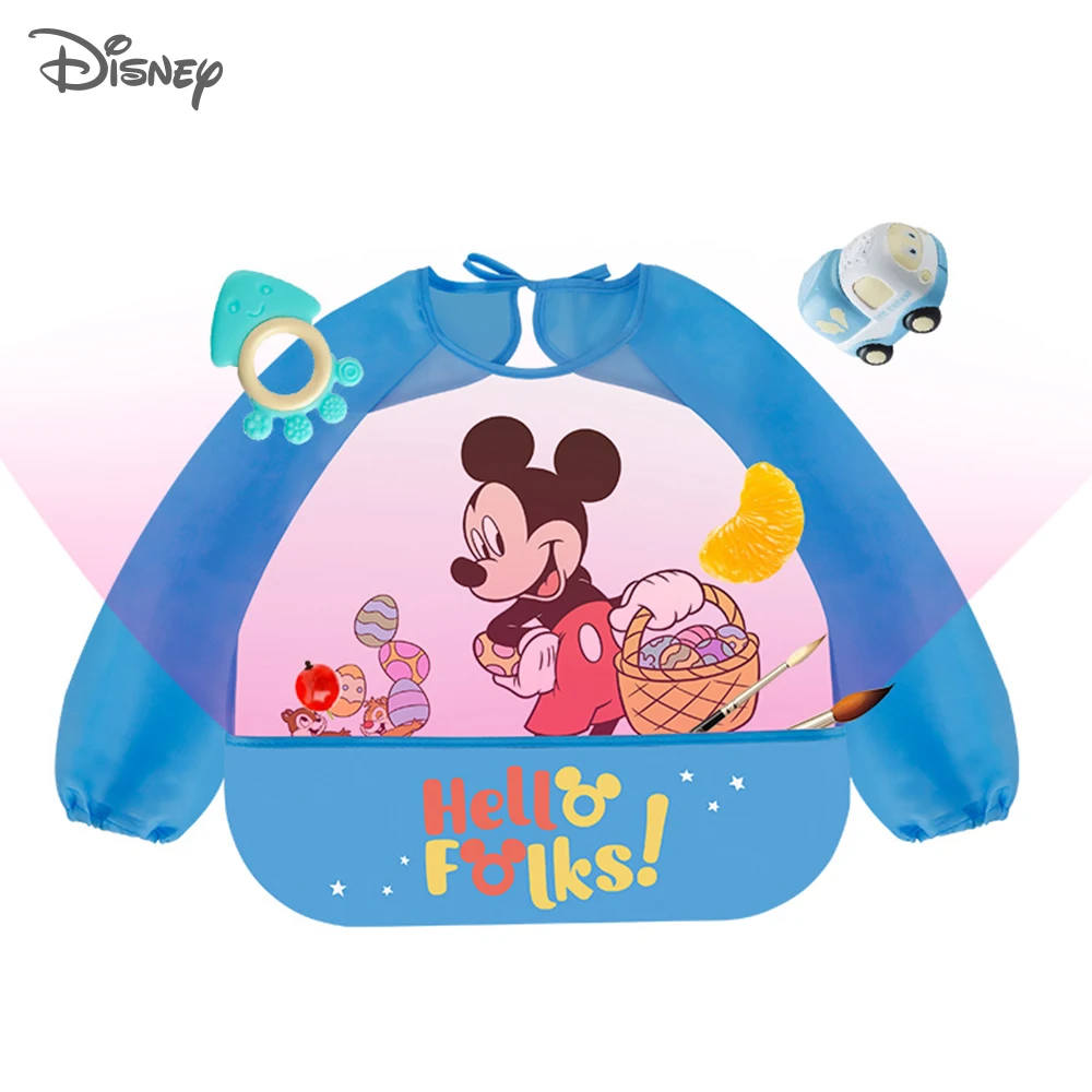 Нагрудник детский непромокаемый с длинным рукавом, с изображением Микки и Минни, с карманом, Disney, милые детские нагрудники
