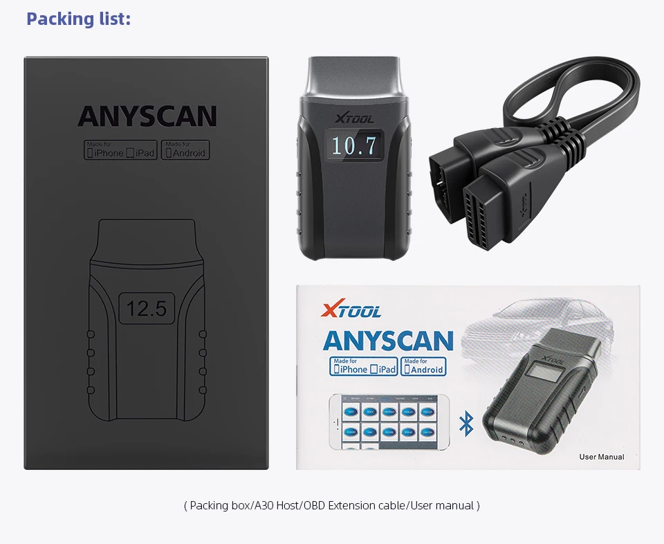 1 шт. x XTOOLAnyscan A30Все системы автомобиля детектор OBDII считыватель кодов Sanner