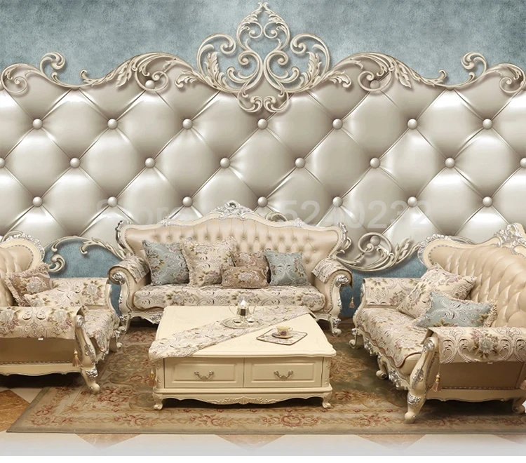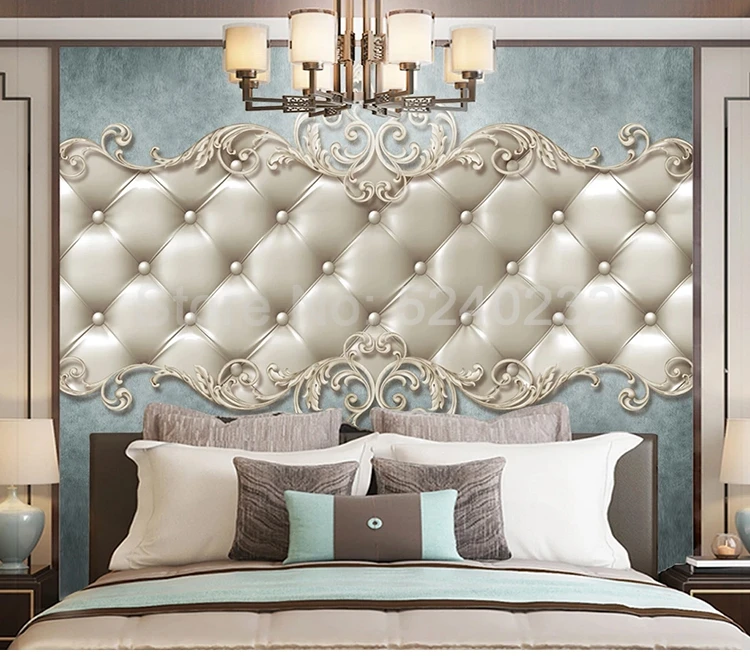 3D настенная бумага в европейском стиле на заказ, мягкий мешок, кожаный синий фон для телевизора, настенные фрески, декор для спальни, гостиной, настенная бумага