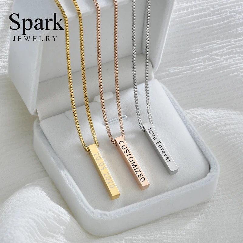 Спарк из нержавеющей стали на заказ имя Дата бар ожерелье персонализированные именная табличка Вертикальная бирка толстая цепочка ожерелья для женщин мужчин подарок