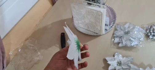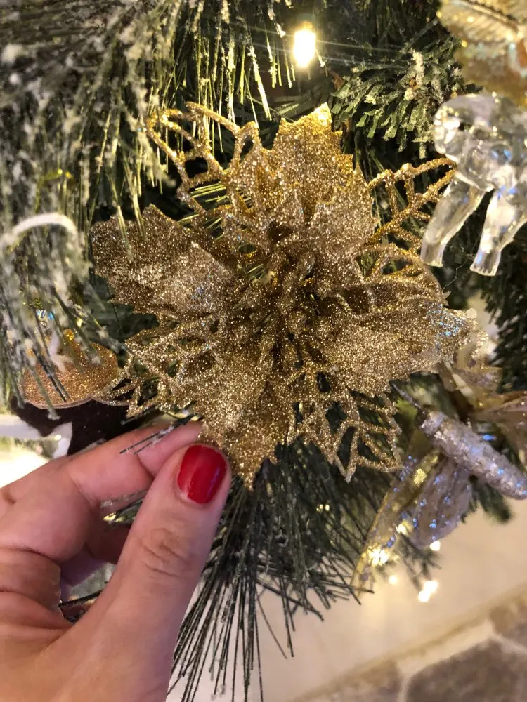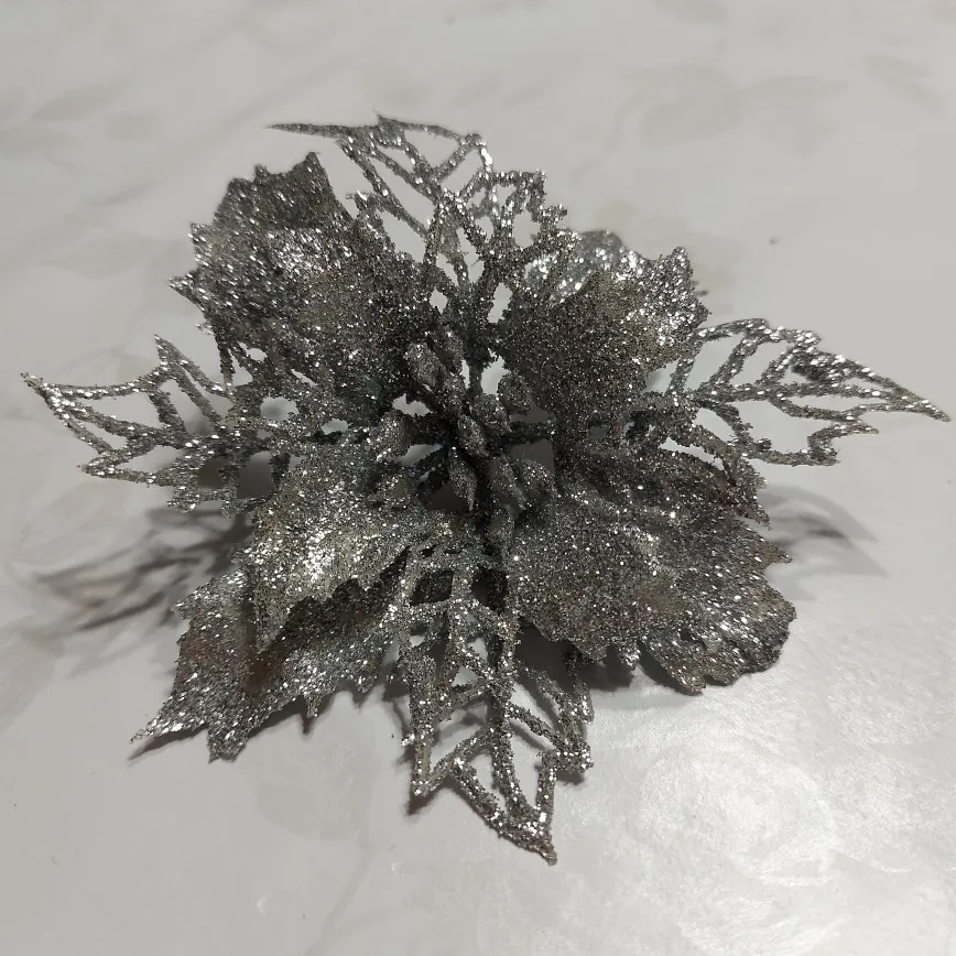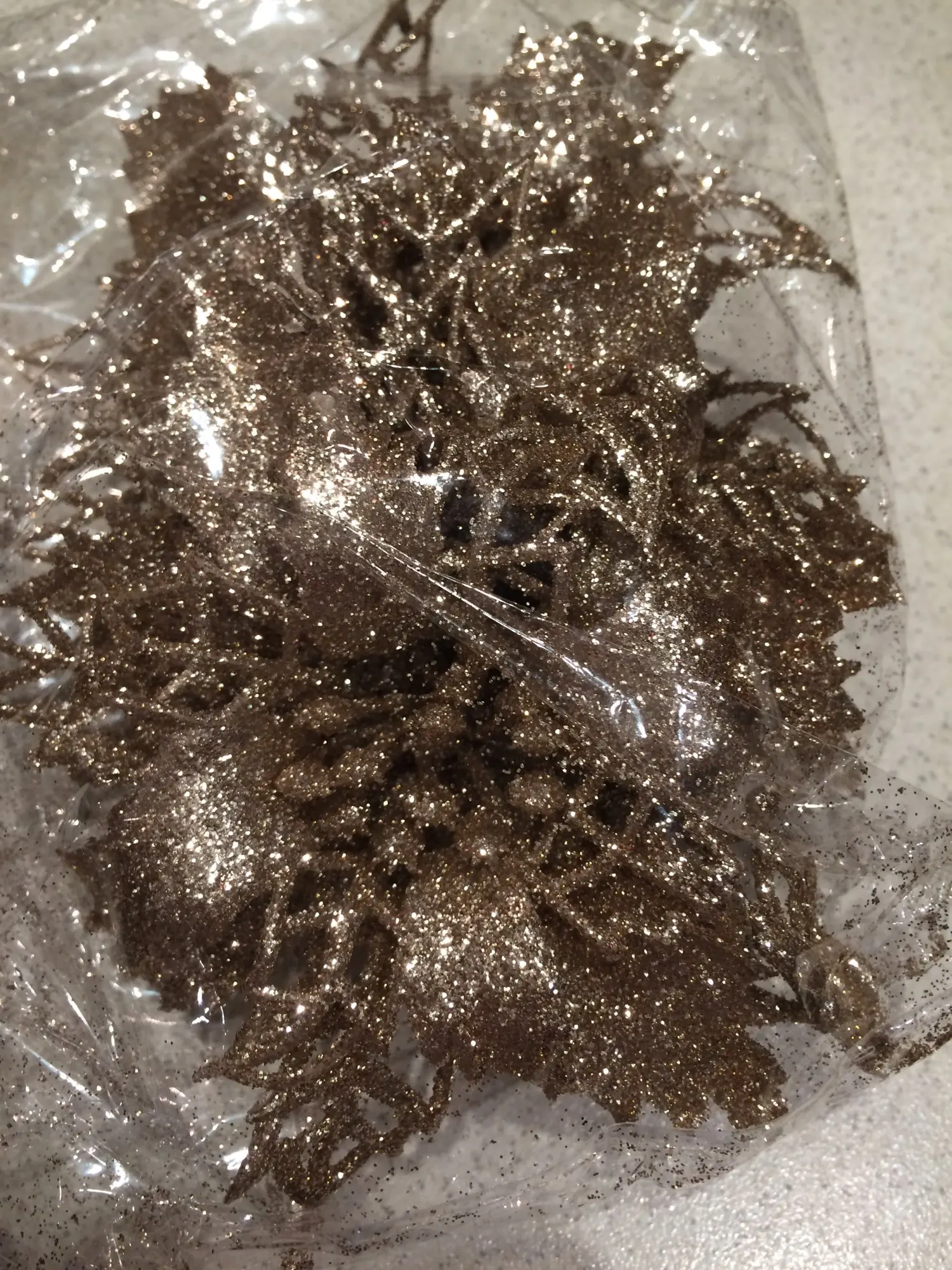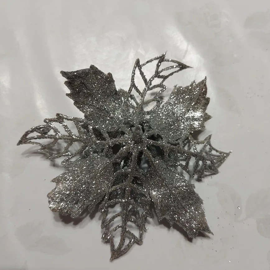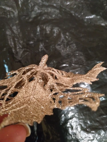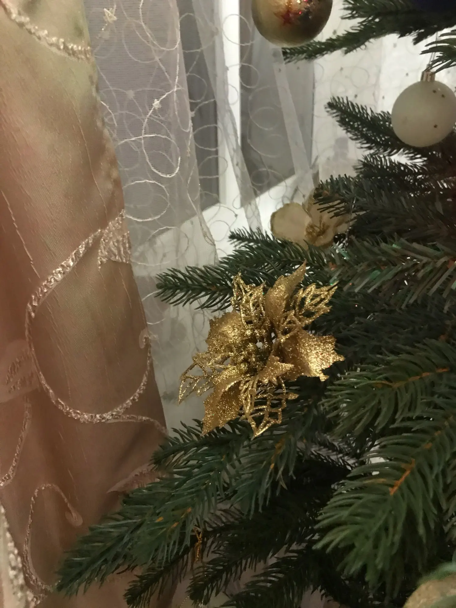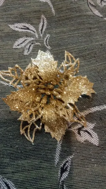 Вполне приличные цветочки. Да, блестинки с них естественно слегка сыплются, но критичного в этом ничего нет. Упакованы были просто в целофан. Слегка примялись, но я их не расправляла, просто положила на ёлку. Креплений никаких нет, для тех, у кого натуральная ёлка, само то! Единственное но...доставка заняла 2,5 месяца...ну безумно долго, еле успела посылка к новому году.