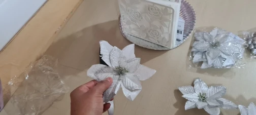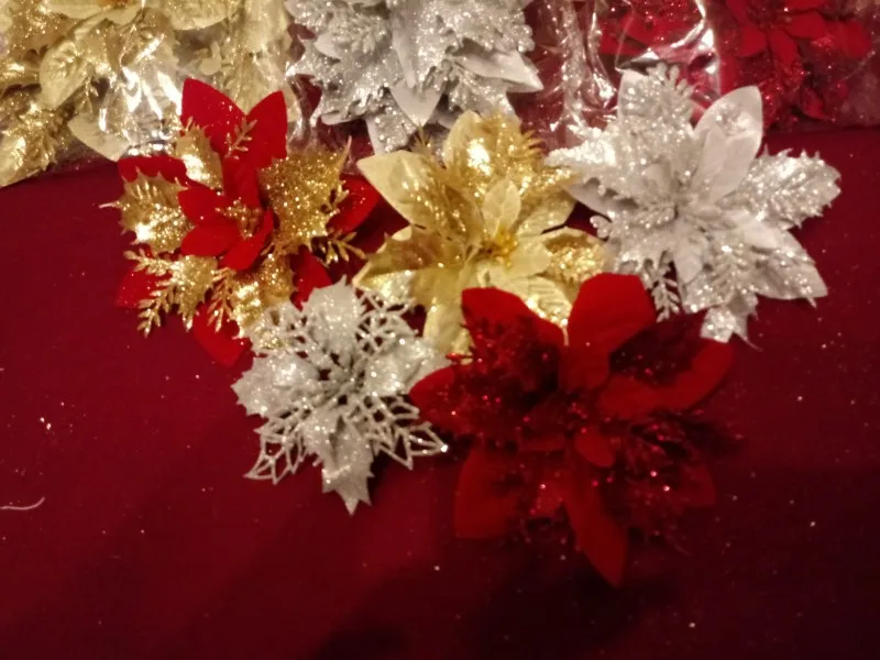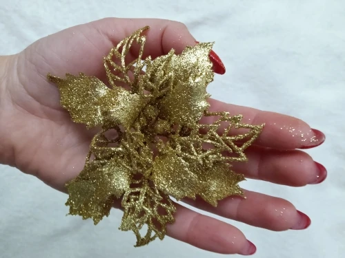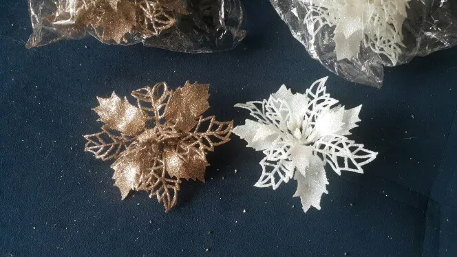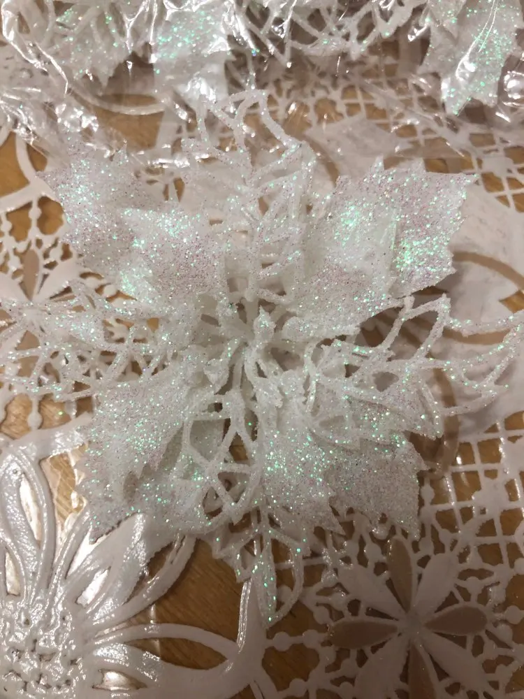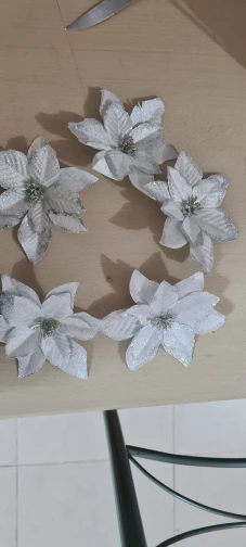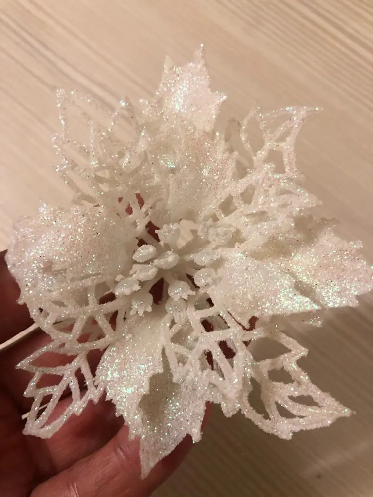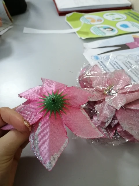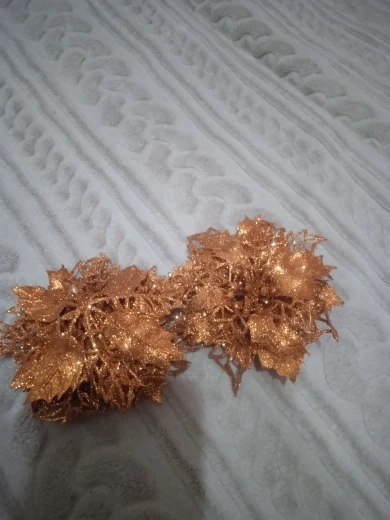 Цветочки небольшие, но очень симпатичные и хорошо смотрятся. Можно и на ёлку, для любых новогодних поделок. Доставка быстрая.