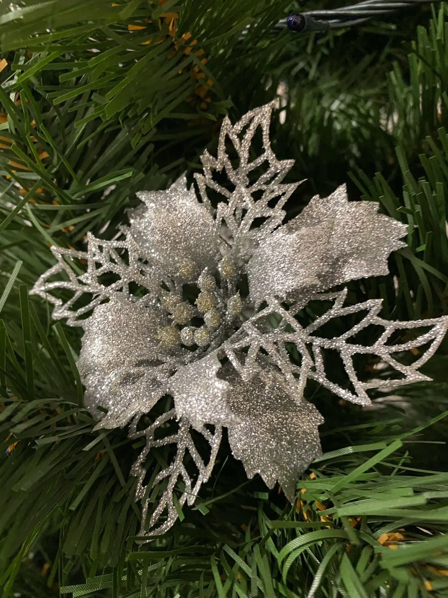 Цветы красивые, но нет крепления. Не очень пока понимаю как их вешать на ёлку, но думаю что-нибудь придумаю.