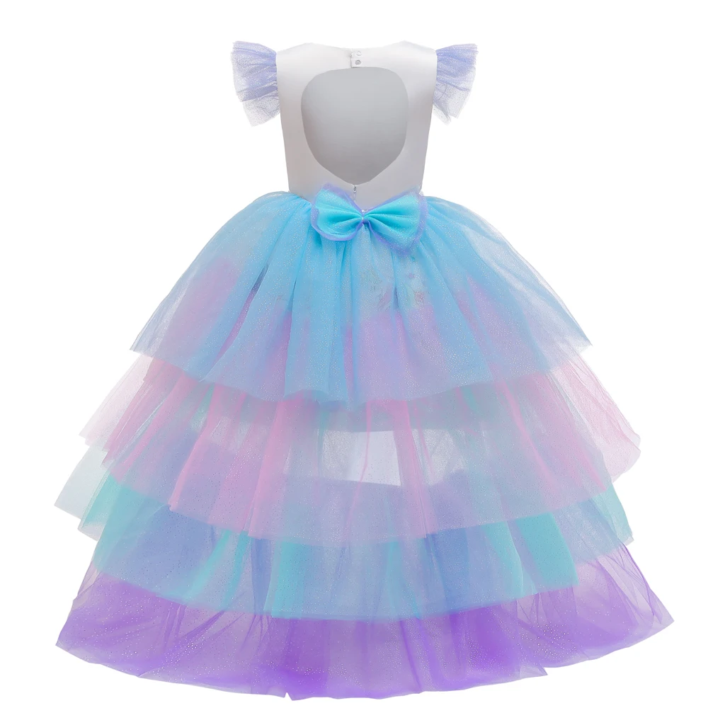 Платье принцессы с единорогом для девочек, длинное Радужное бальное...