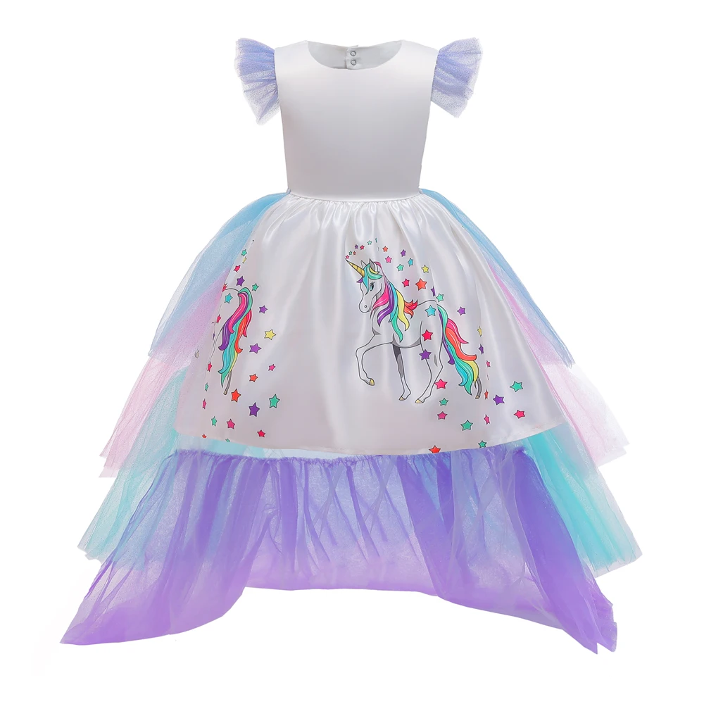 Платье с единорогом для девочек, радужные платья принцессы с пачкой...