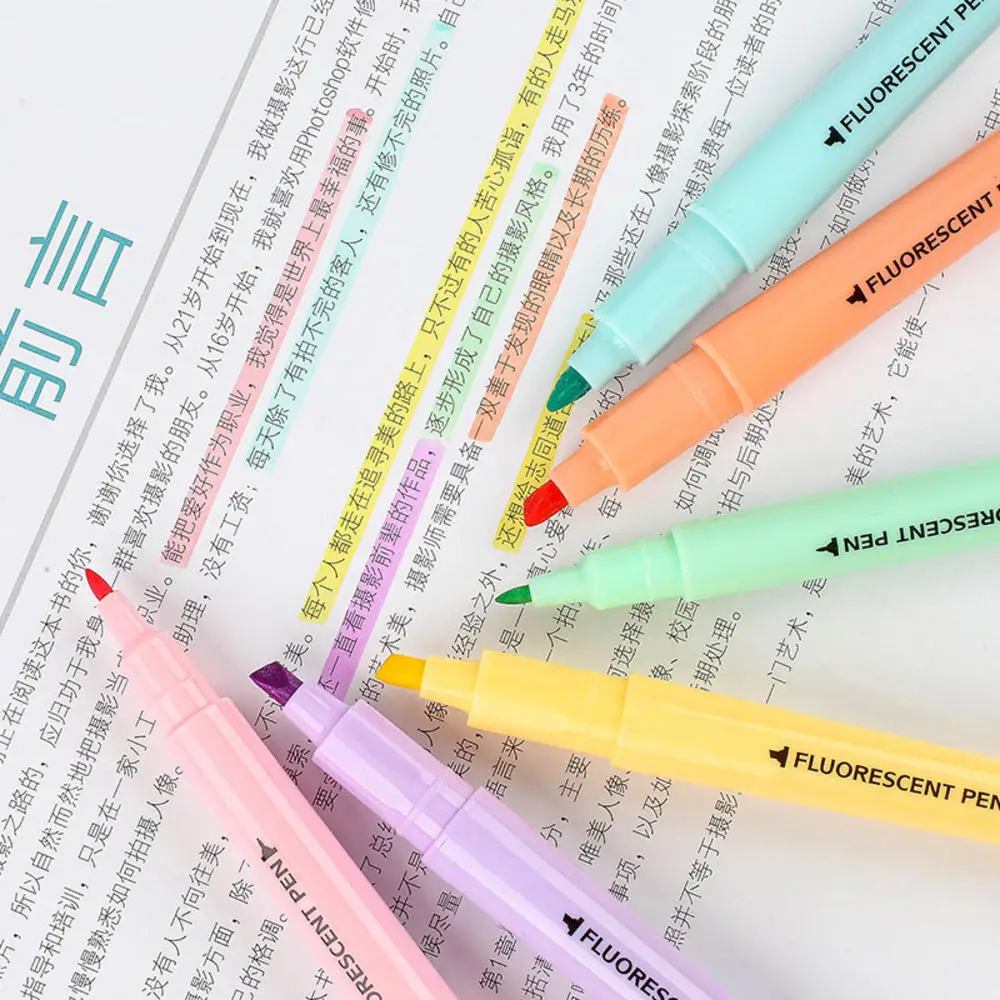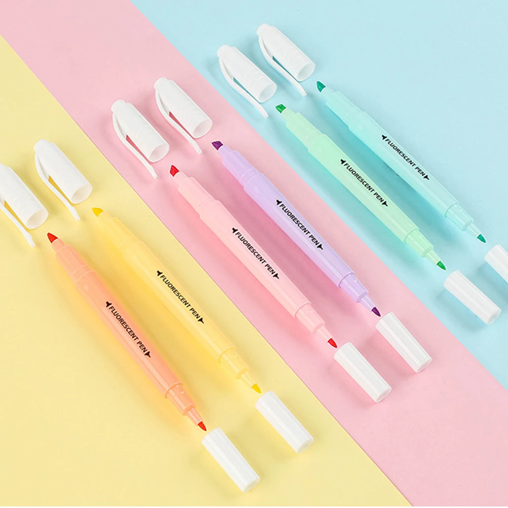 Маркеры флуоресцентные 6 шт.набор, двусторонние, милый маркер, Канцтовары, принадлежности для школы и офиса