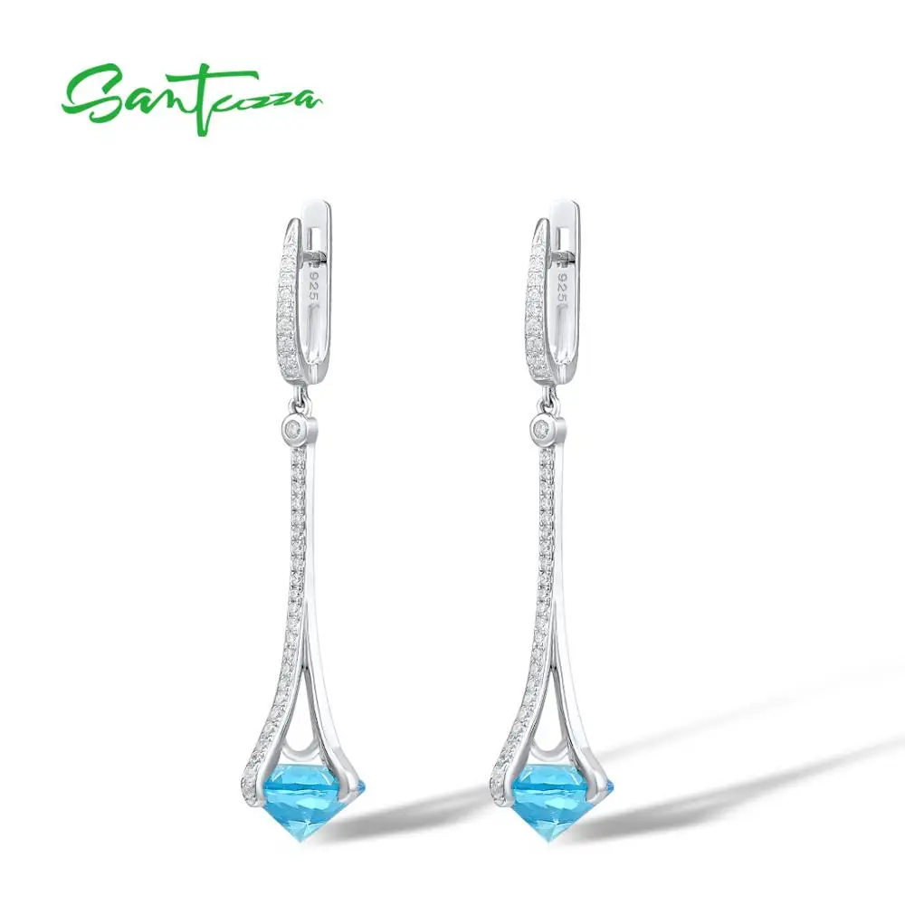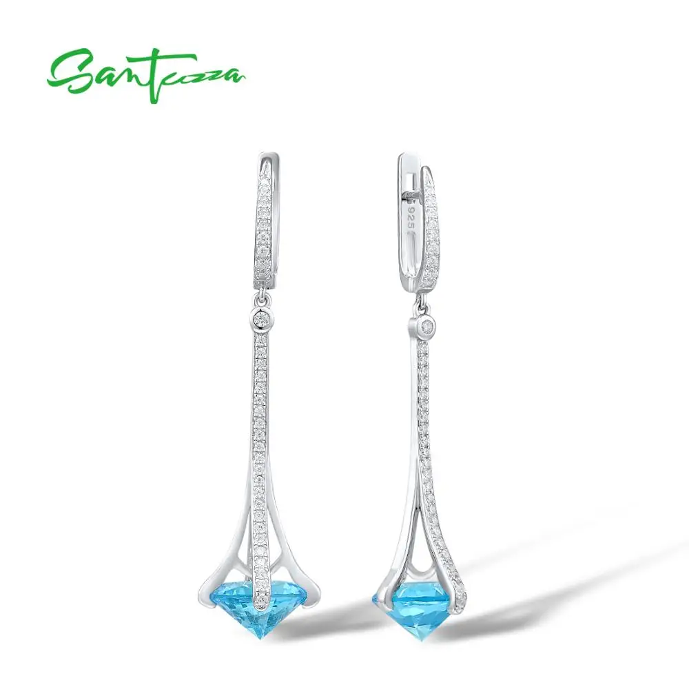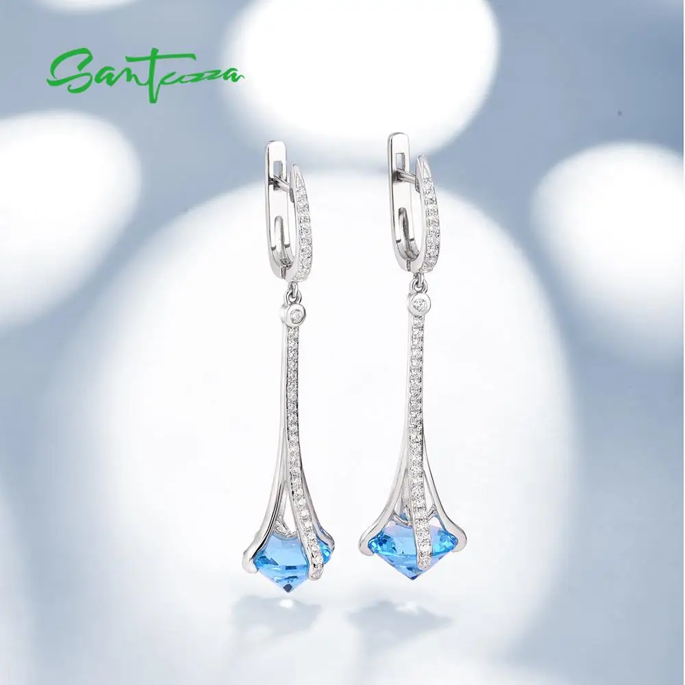 Женские серьги SANTUZZA, с белым кубическим цирконием, Элегантные ювелирные украшения для свадьбы, 925, висячие серьги из серебра 925 пробы, круглые синие камни