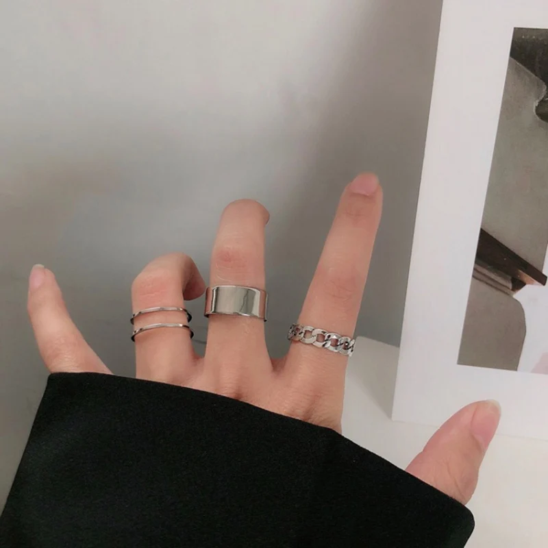 Новинка 3 шт.компл. металлические геометрические открытые кольца в стиле хип-хоп цепочка на указательный палец регулируемое кольцо для женщин модные ювелирные изделия аксессуары