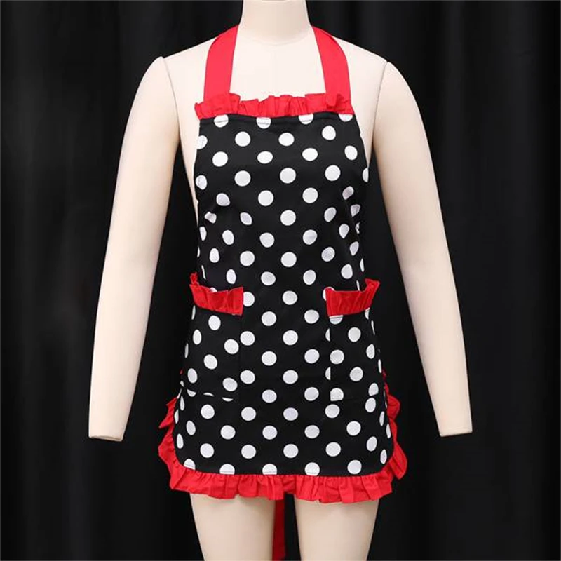 Красивые красные фартуки в стиле ретро для кухни, женские хлопковые фартуки в горошек для девушек, винтажные фартуки для кулинарного салона, рождественское платье