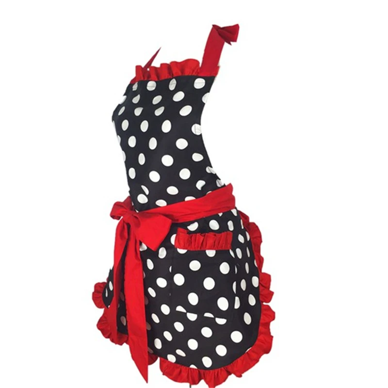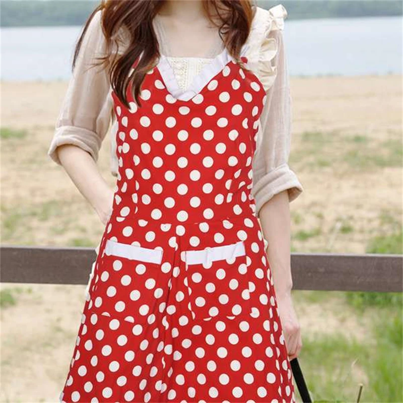 Милые красные Ретро фартуки для женщин и девочек хлопок в горошек К...