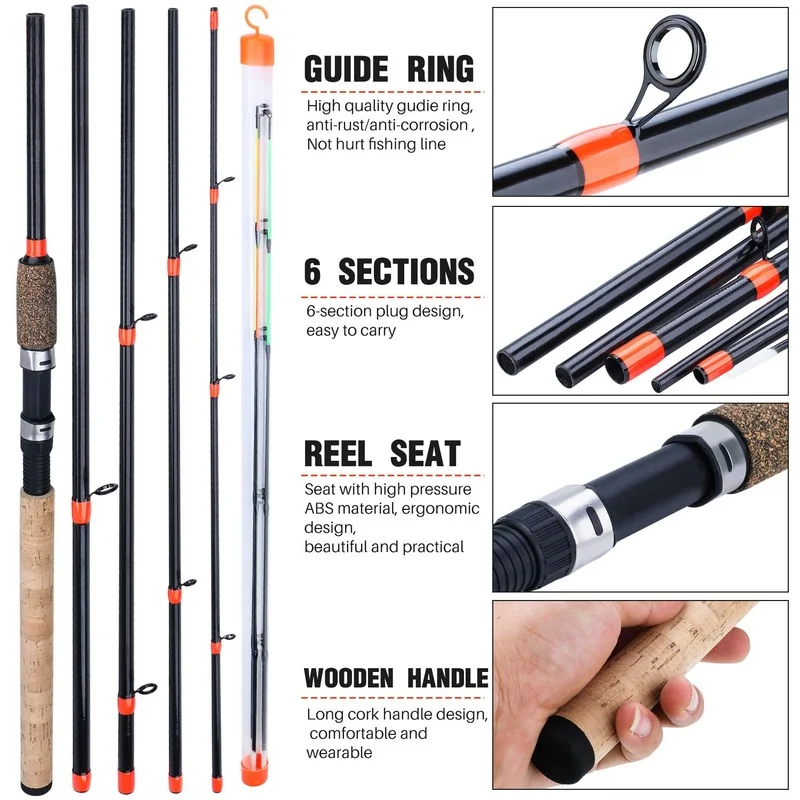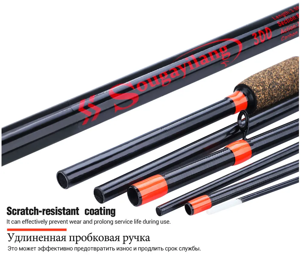 Удочка рыболовная из углеродного волокна, с удлиненной ручкой, 6 секций
