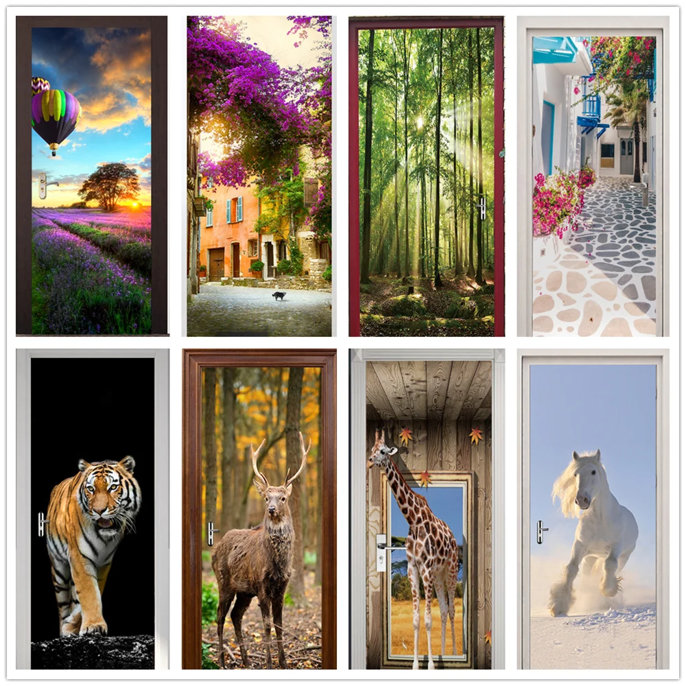 Наклейка на дверь в виде аллеи цветов, современный дизайн, городская дорога, водонепроницаемые наклейки, 3D обои для гостиной, домашний декор, наклейка
