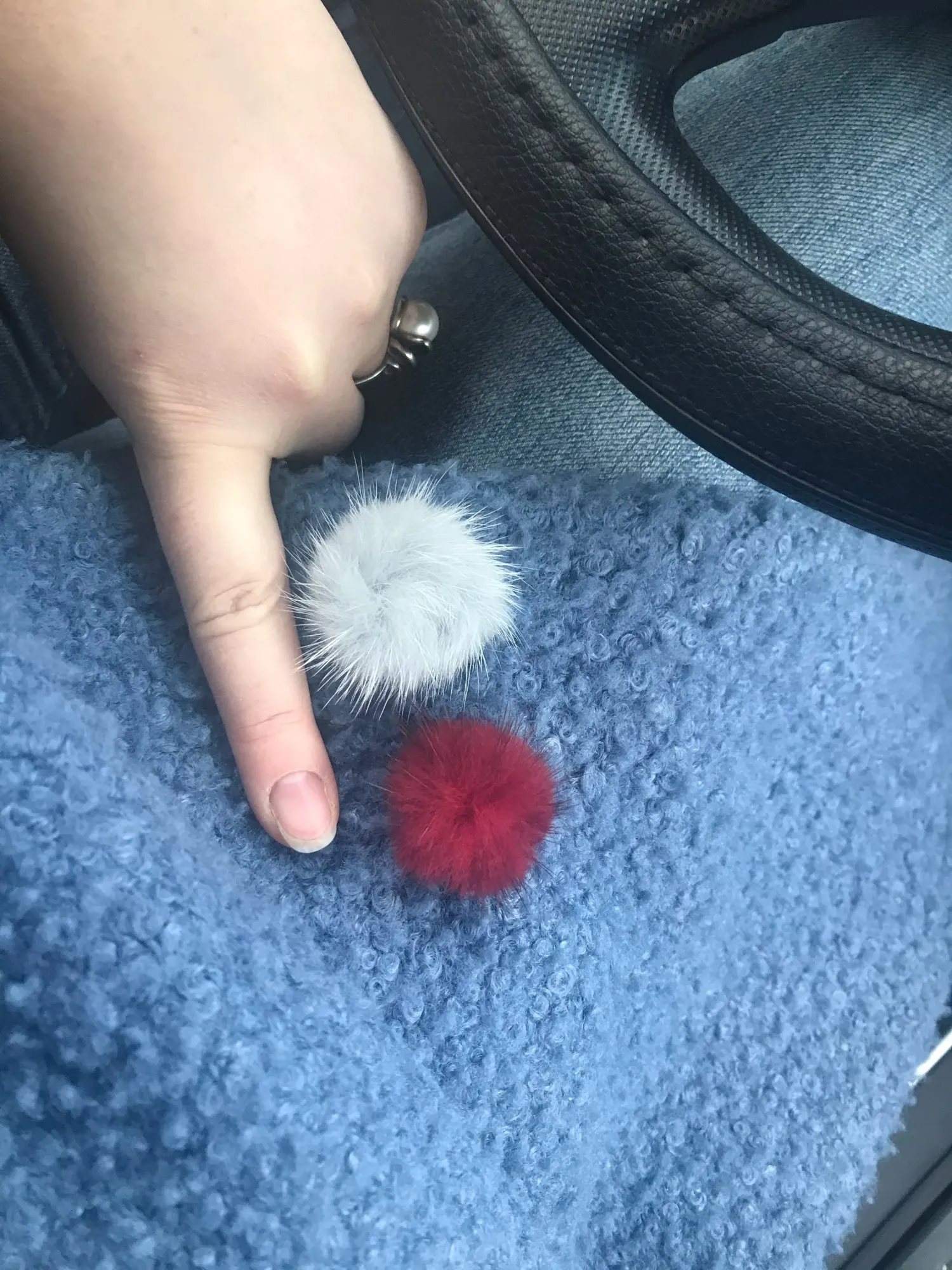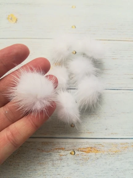 малюсенькие помпончики, честно говоря своих денег не стоят, пришли в пакете сплюснутые, расправиться, мех натуральный.