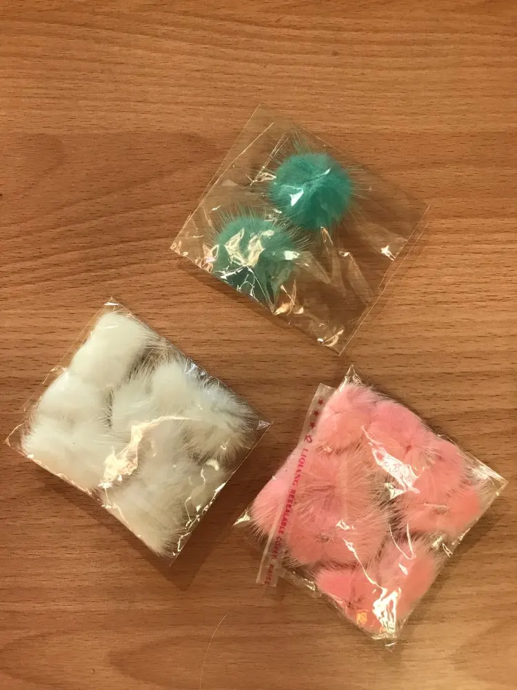 Помпоны попались разного качества, некоторые вообще можно выкинуть. Расстроило что не оказалось ни одного белого.