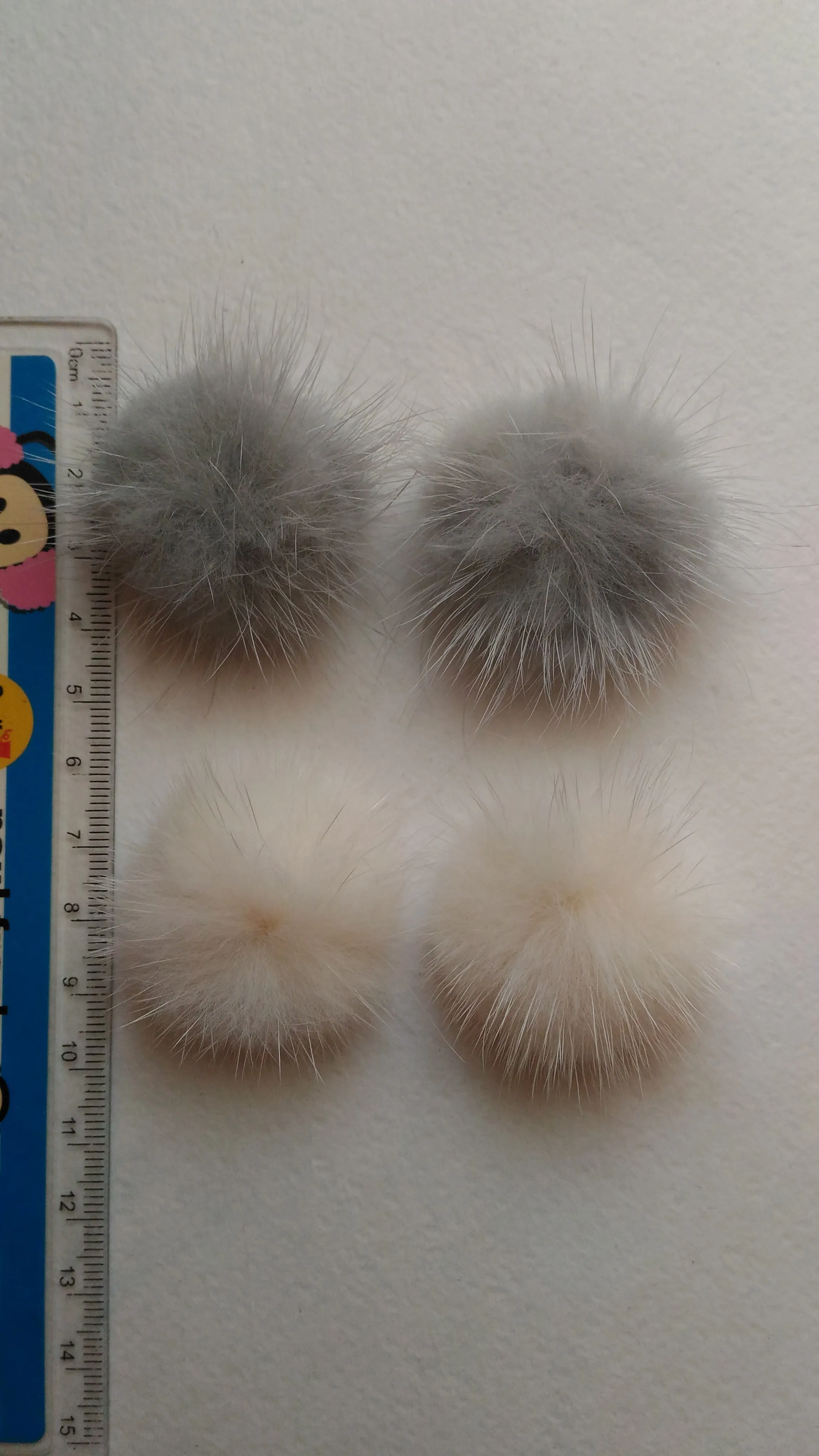 Заказывала помпоны в диаметре 4 см. Мне понравились. Мех довольно густенький.