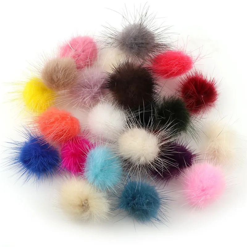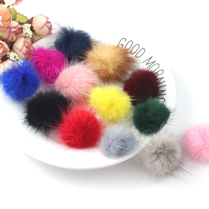 Помпон из меха норки для рукоделия, 2,5 см, 3 см, 4 см, 510 шт., помпоны для кольца, брелок для ключей в виде туфли шапок, пушистый помпон, аксессуары для рукоделия