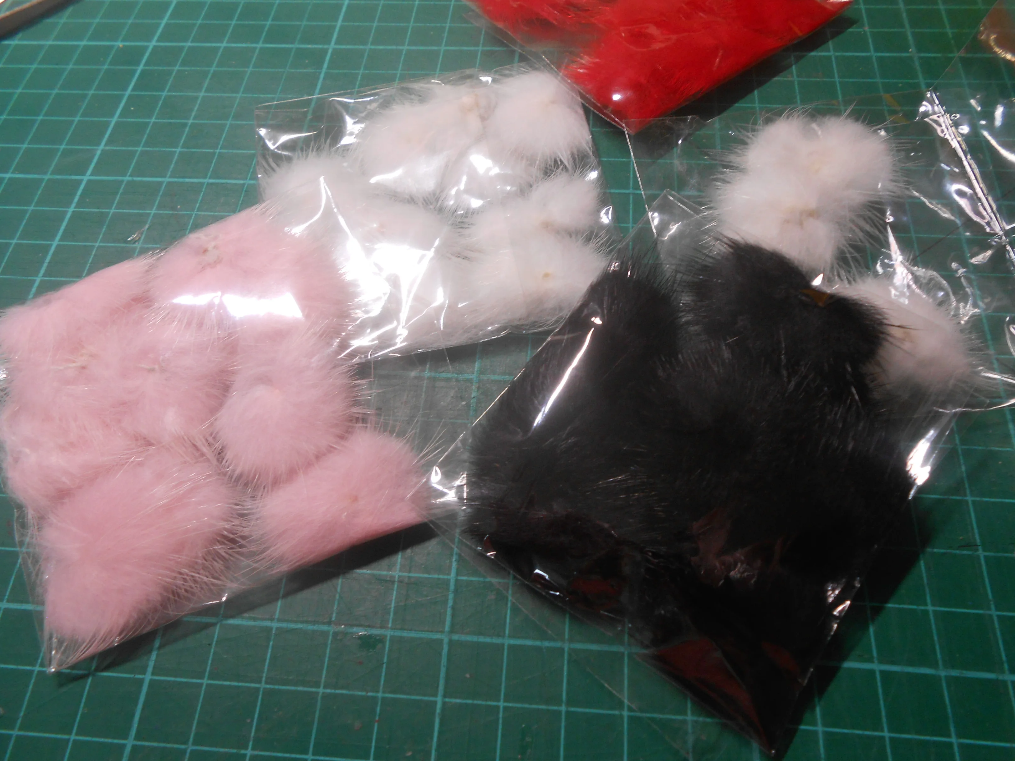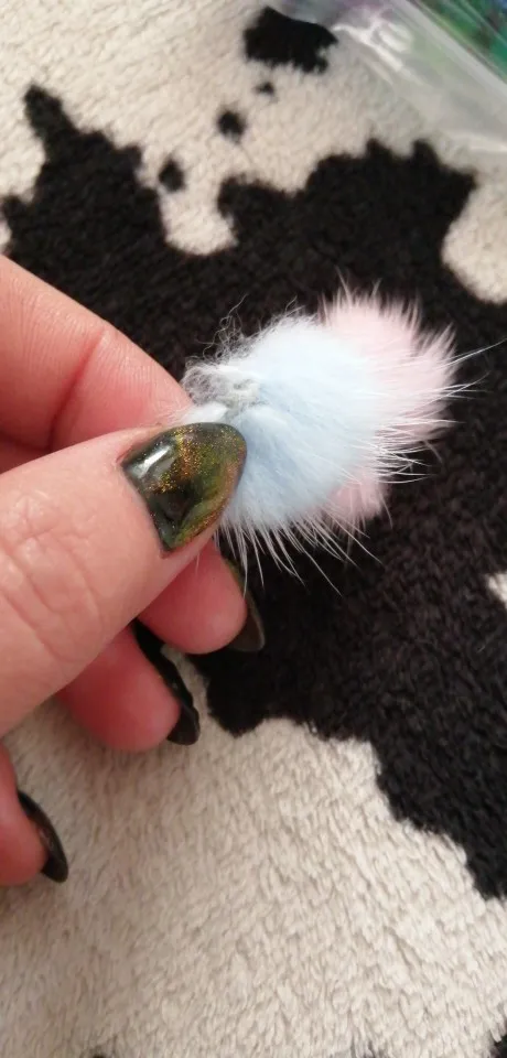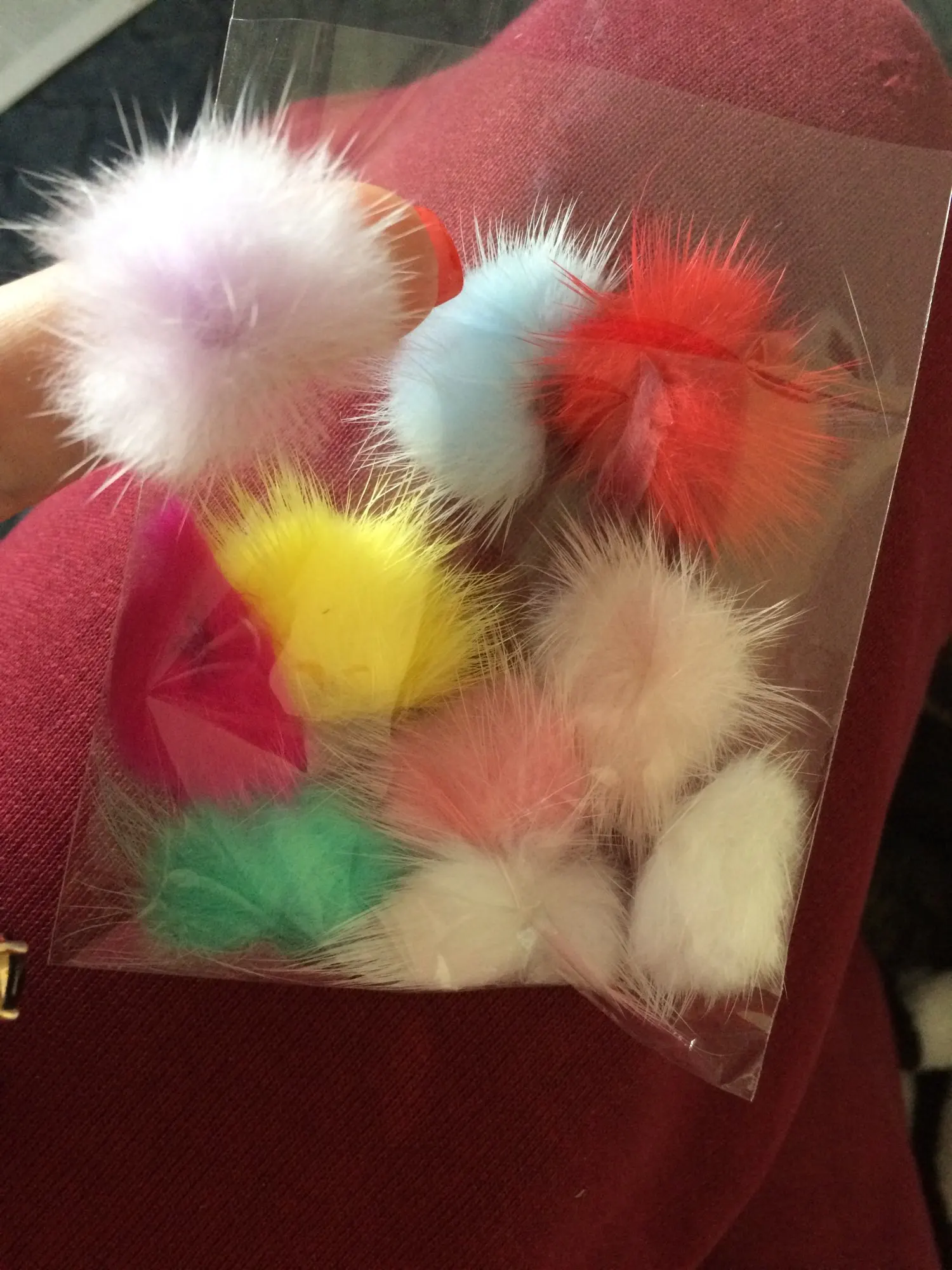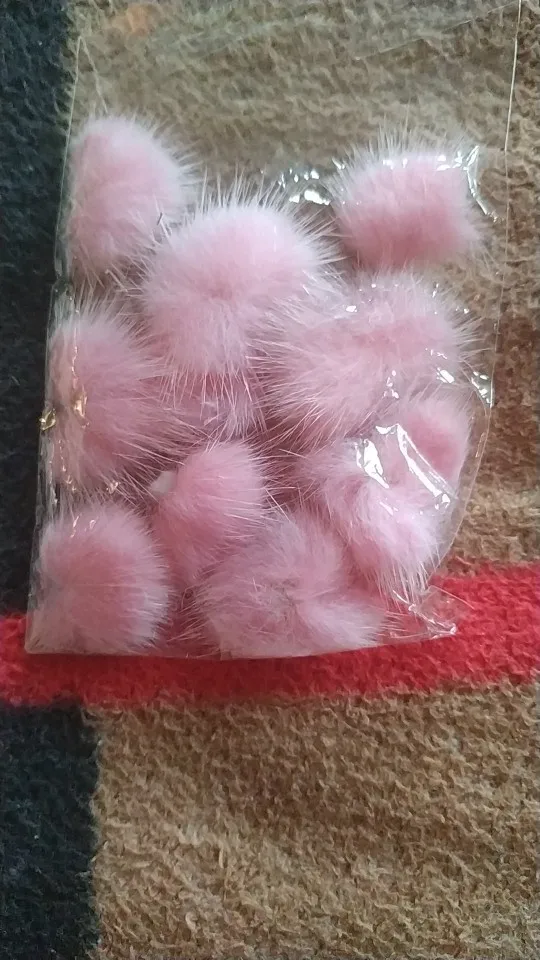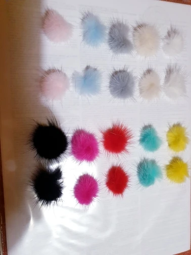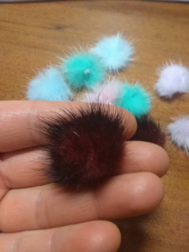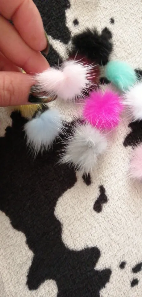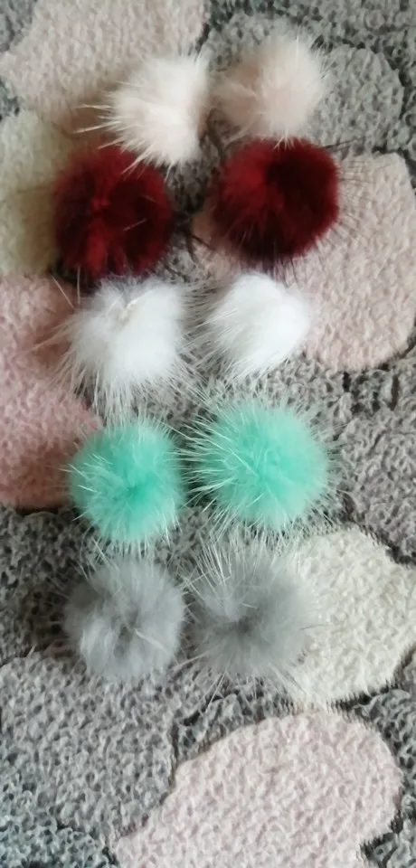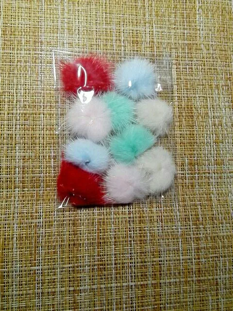 Помпоны из нат. меха, пришли сплющенные, но я, думаю, фен всё поправит.