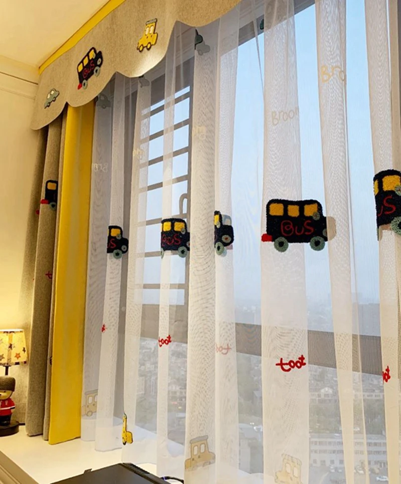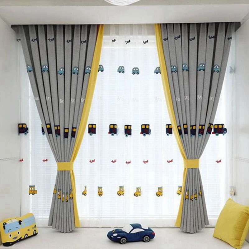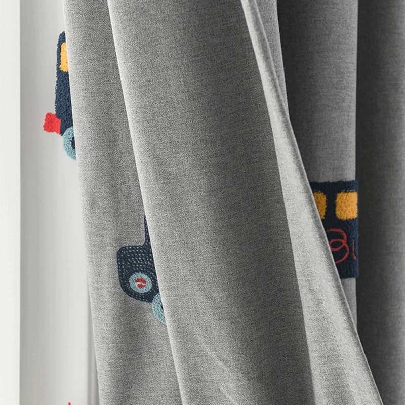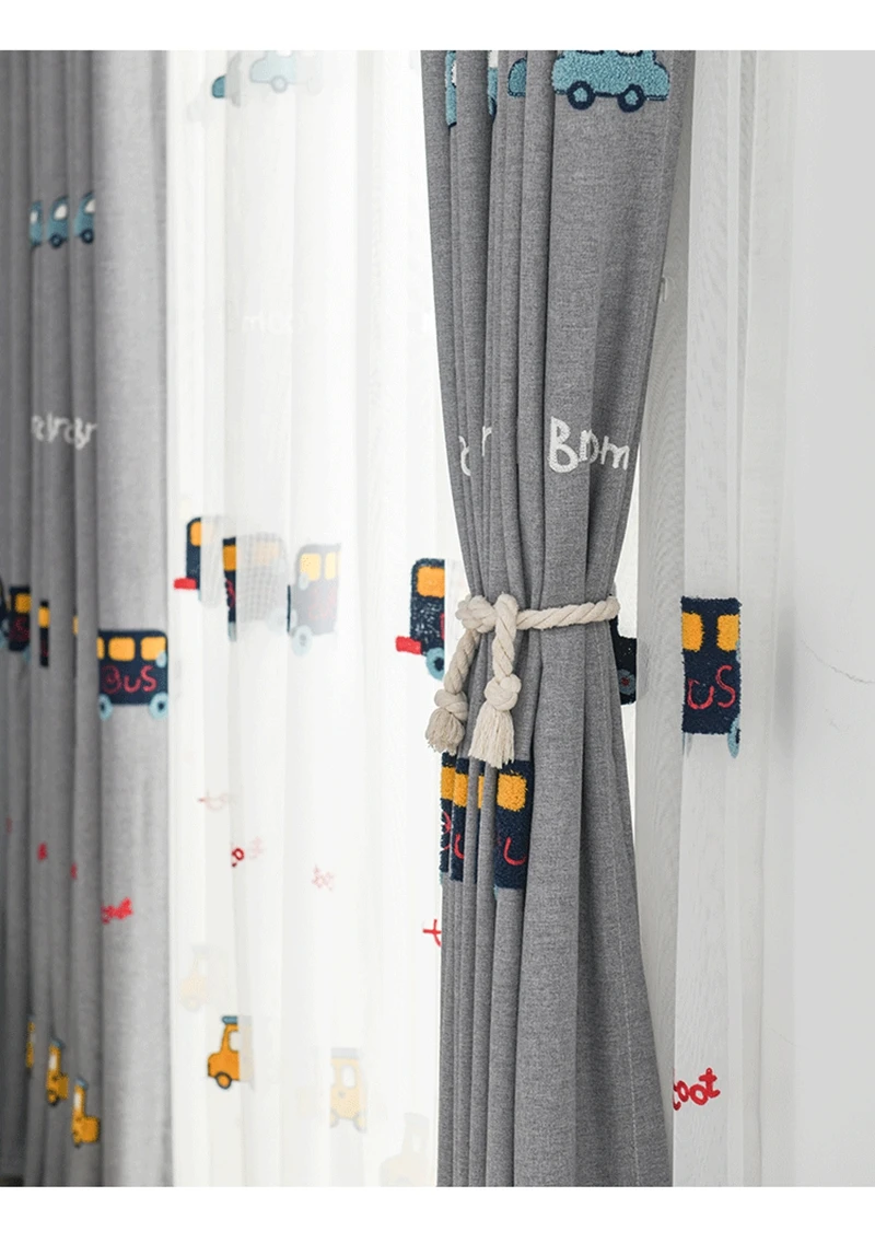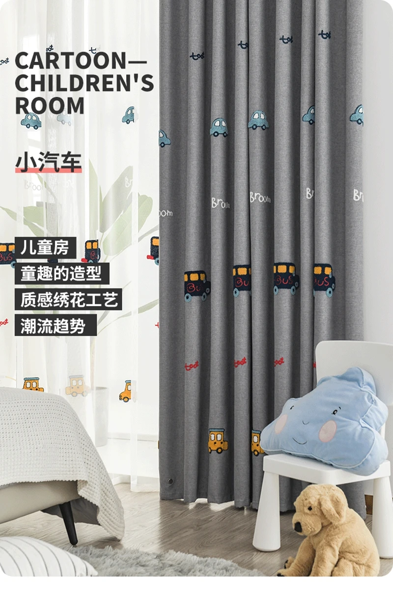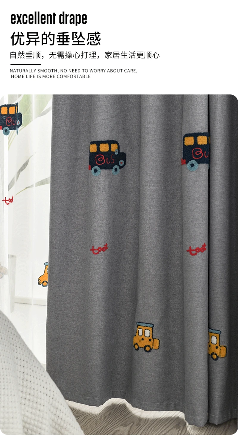 Мультяшные детские автомобильные утолщенные затемняющие шторы для детской спальни, украшение из хлопка и льна, серые оконные драпировки для гостиной, тюль X765 #3