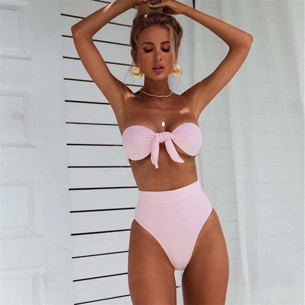 Комплект женского бикини с бюстгальтером пуш-ап, однотонный, лето бикини, пляжный купальник