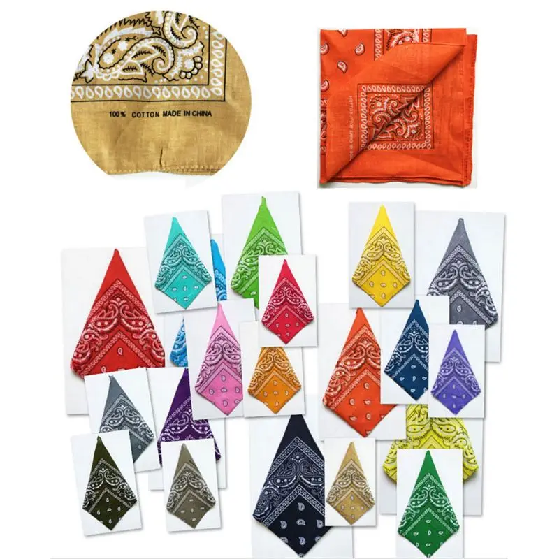 20 цветов, разноцветная хлопковая бандана, новинка, двусторонний принт, Пейсли, ковбойская бандана, праздвечерние чный шарф, повязка на голову, носовые платки