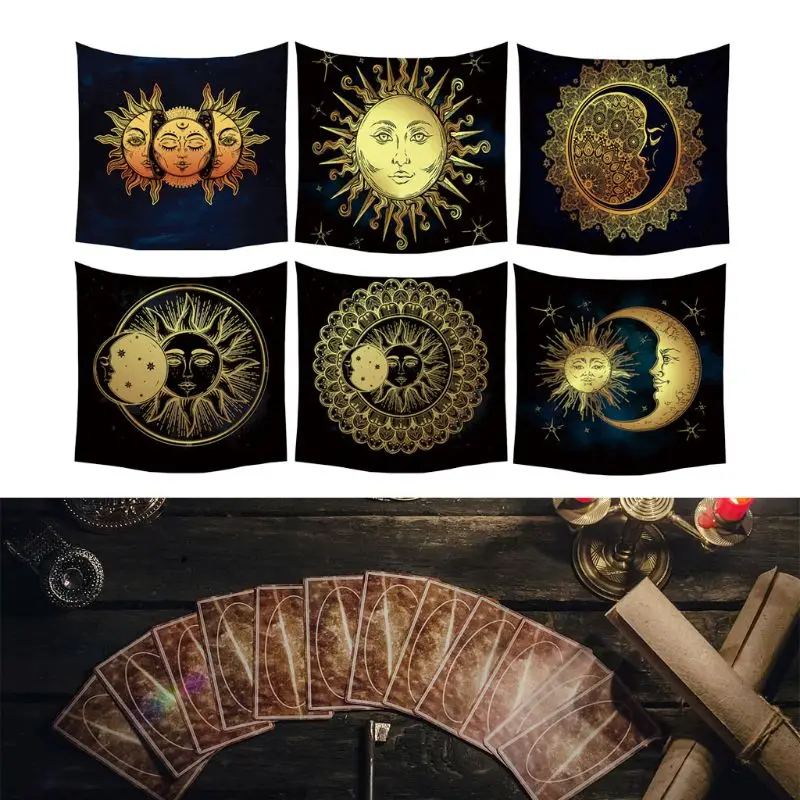 Настенный Гобелен Таро, подвесной гобелен с солнцем и луной, психоделический настенный гобелен, алтарь, таро, ткань, гадания, аксессуары, украшения для дома