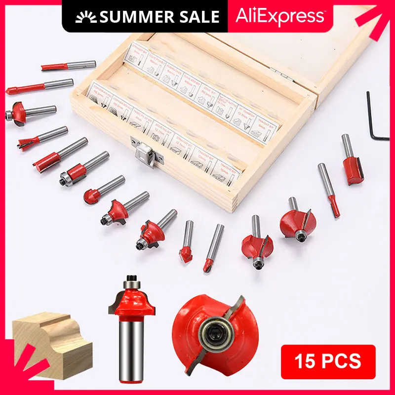 Фрезы для деревообработки, хвостовик 14 дюйма, карбидный фрезерный наконечник для резьбы по дереву, гравировальные режущие инструменты для фрезерования, гравировки, 15 шт.компл.