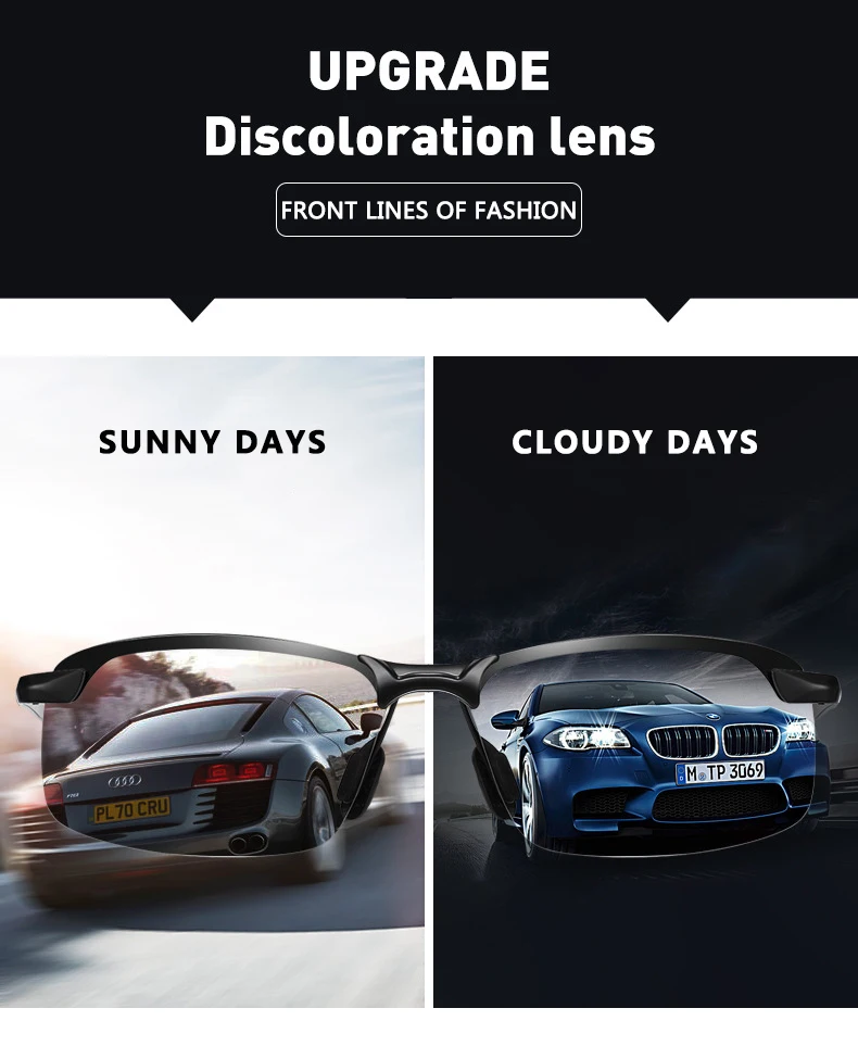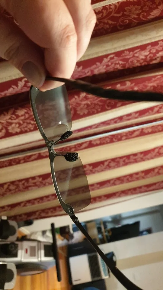 очки сделаны качественно. но на душках нет никаких надписей что это заводской товар, и я не увидел никакого фото затемнения или оно настолько мало. смотреть через них не щурясь невозможно.