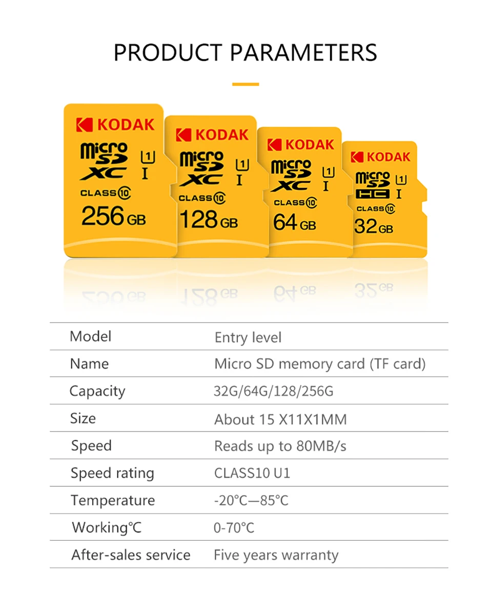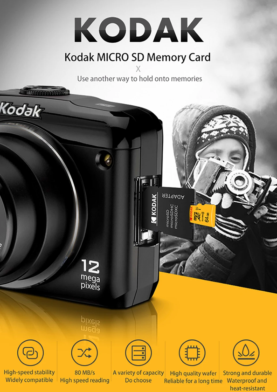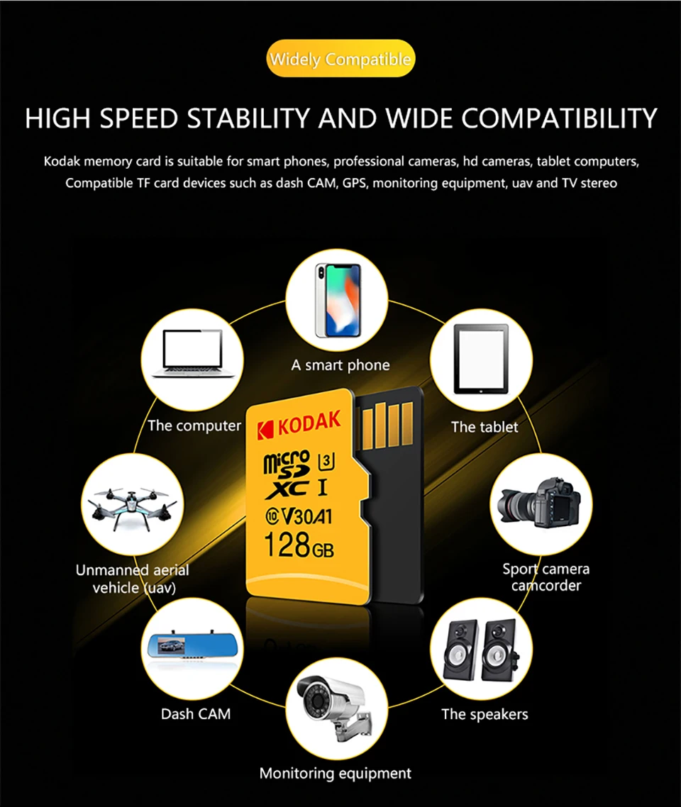 Карта памяти Kodak подходит для смартфонов, профессиональных камер, hd-камер, планшетных компьютеров, совместимых tf-карт, таких как видеорегистратор, GPS, оборудование для мониторинга, бла и ТВ-стерео.