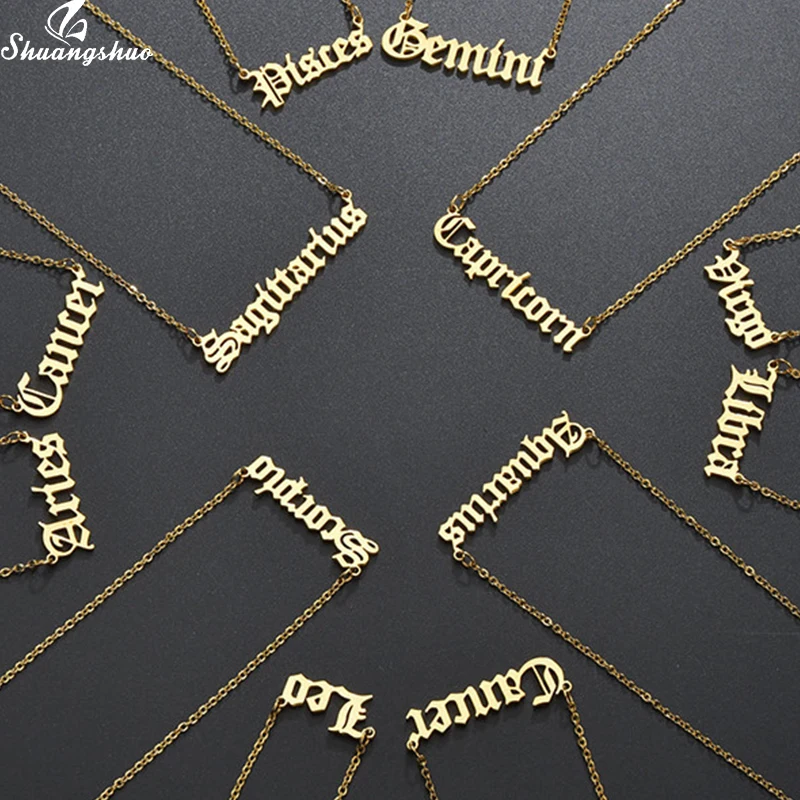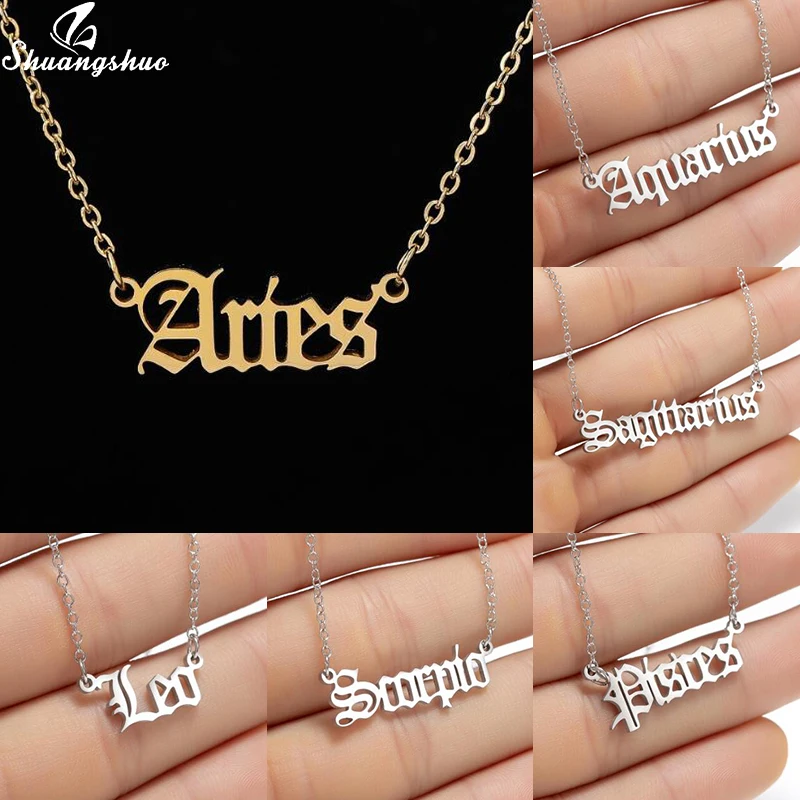 Зодиакальное колье с надписью, ювелирное изделие из нержавеющей стали, созвездие, Старое Английское ожерелье, дева, Лев, Таурус, винтажное ожерелье с 12 созвездиями