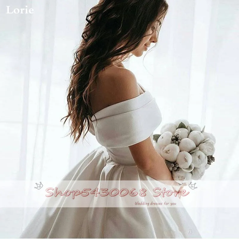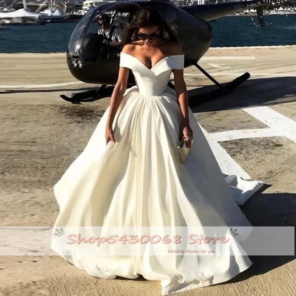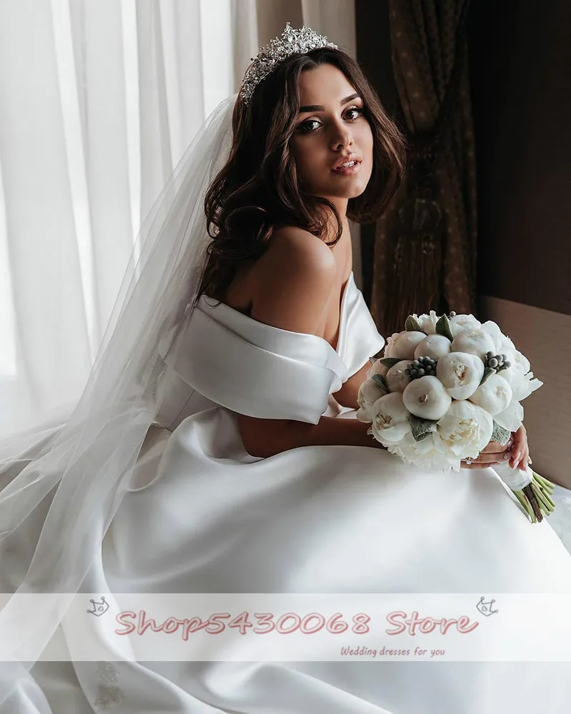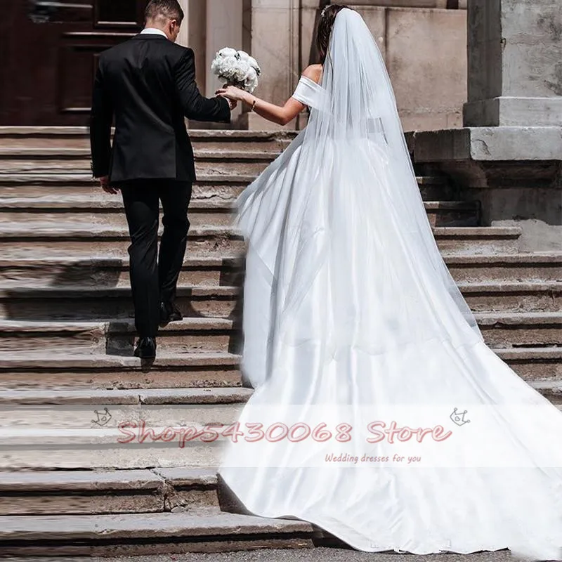 Атласные винтажные свадебные платья принцессы, новинка 2021, свадебные платья с открытыми плечами для невесты, с длинным шлейфом, белое, цвета слоновой кости, Свадебное бальное платье