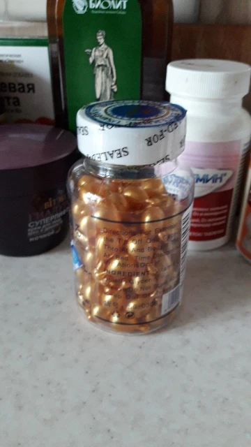 не считала, сколько штук, но баночка полная, закрыта фольгой защитной. В капсуле легкое масло, без запаха, посмотрим как в действии