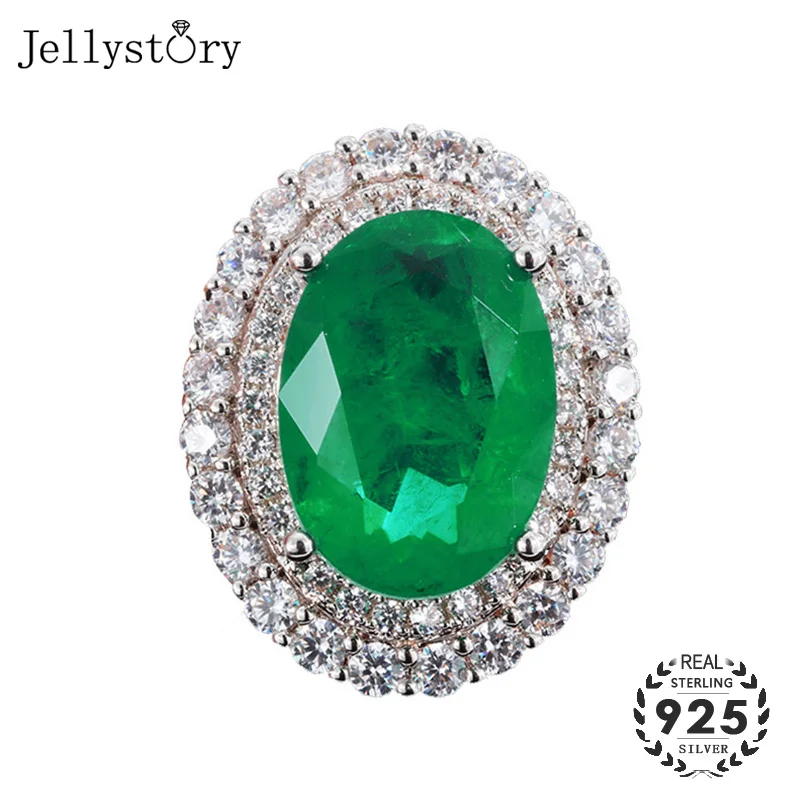Винтажное кольцо с подвесками Jellystory для женщин, реальное женское серебряное ювелирное изделие, кольца с Овальным Изумрудом, драгоценные камни, свадебный подарок