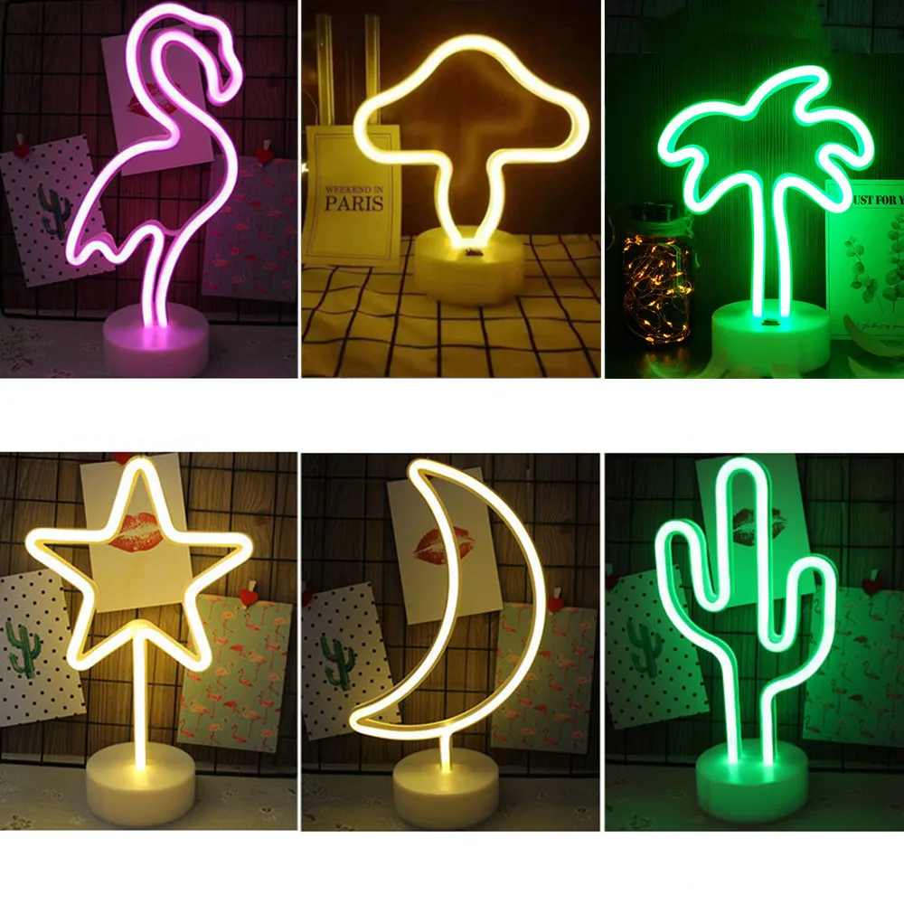 17 стилей радужные светодиодные неоновые вывески светильник USB Батарея Фламинго Сердце Звезда Свадьба бар магазин спальня для Рождественский подарок настольная лампа
