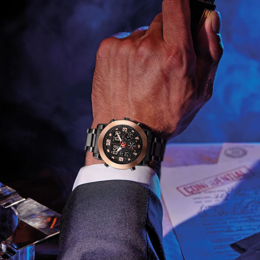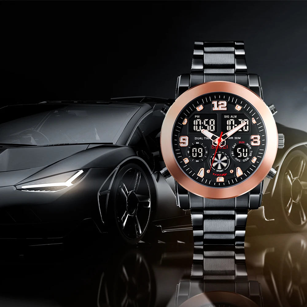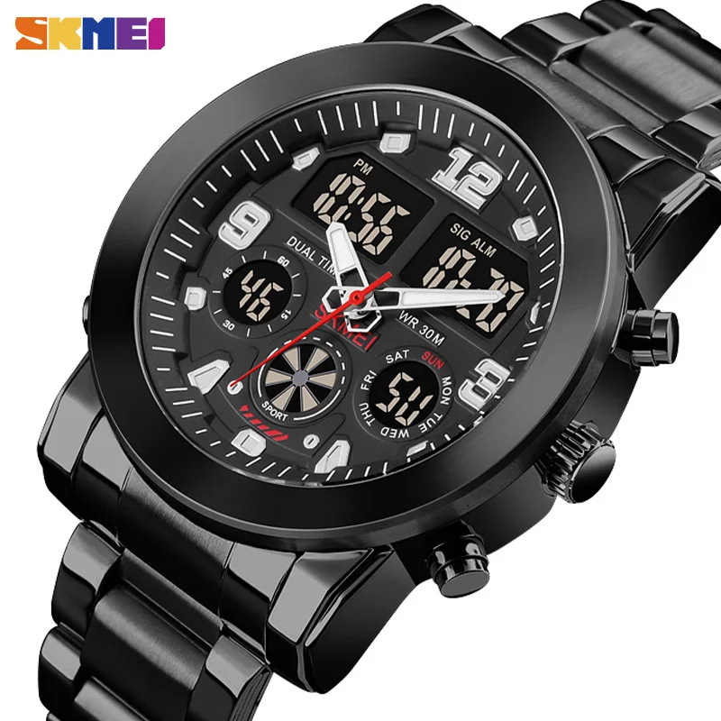 Часы SKMEI мужские с хронографом, модные цифровые повседневные с ремешком из нержавеющей стали, 3 раза, 1642