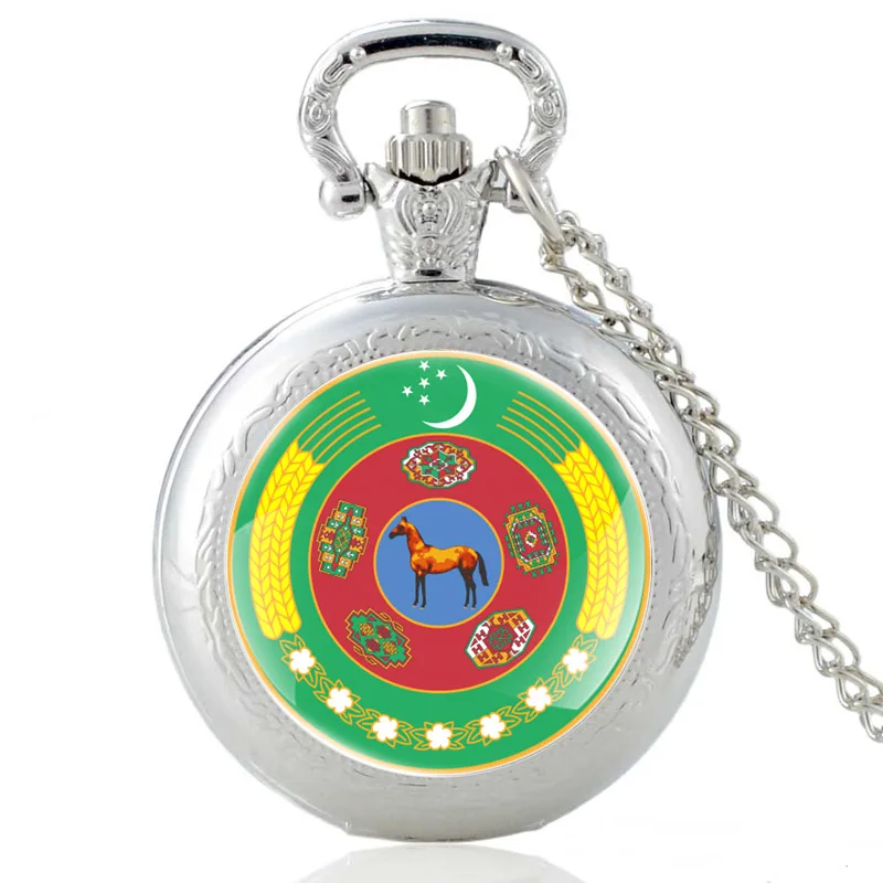 Черные винтажные кварцевые карманные часы с национальным гербом Туркестана, мужские и женские часы с подвеской и ожерельем, часы, подарки