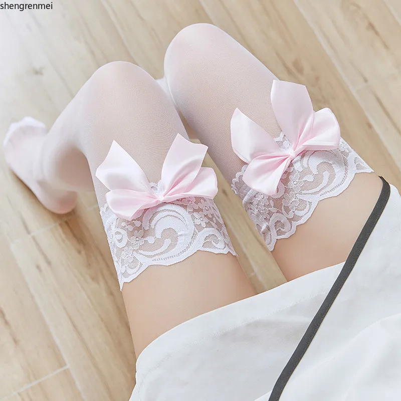 Шэндмэй, для женщин и девочек, Лолита, новинка японские чулки, милые розовые кружевные чулки с бантиком, до бедра чулки по колено, шелковые чулки