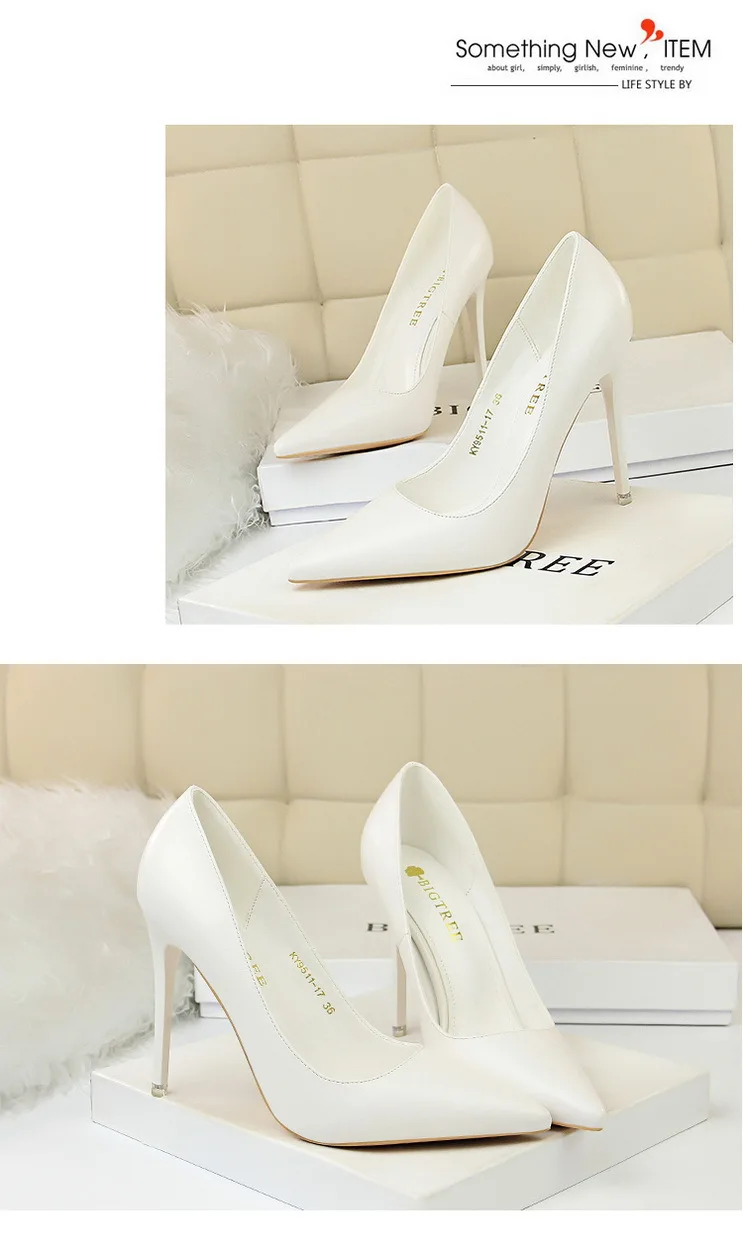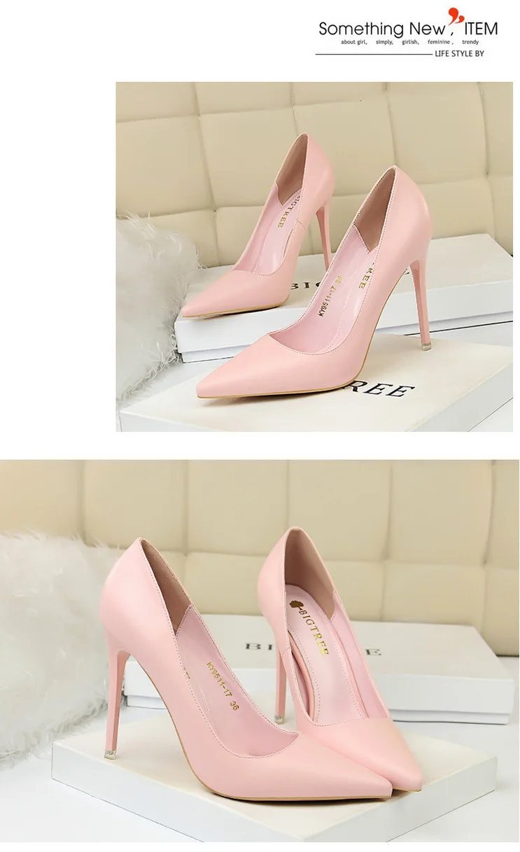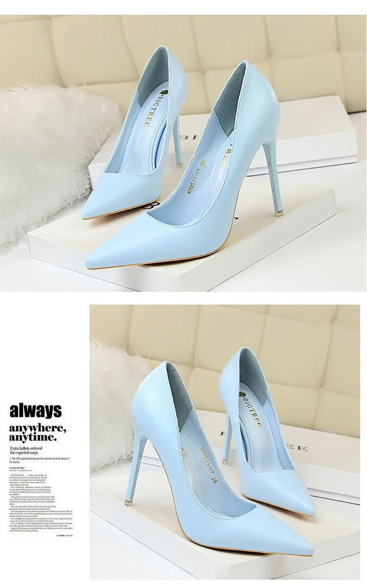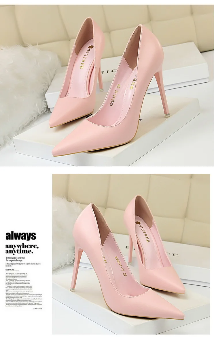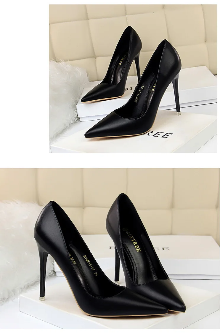 Модная простая женская обувь; Большие размеры; Пикантные тонкие туфли на высоком каблуке-шпильке с закрытым острым носком