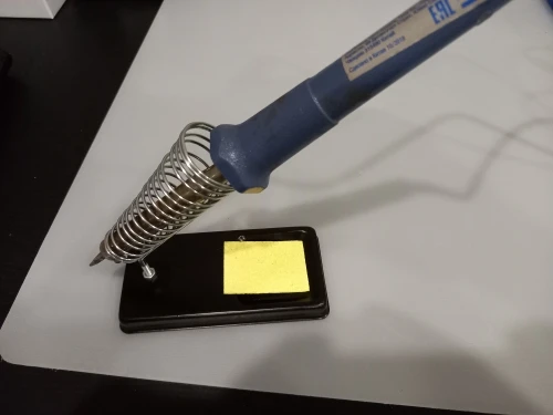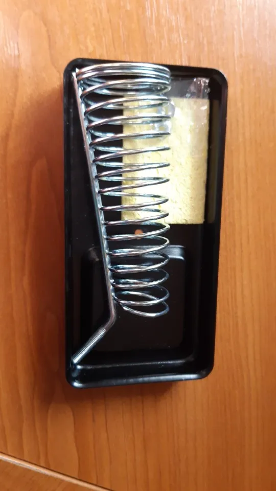 Отправка несколько дней, доставка быстрая, но некомплект. Отсутствует губка для очистки жала. Как видно на фото паяльник либо упрется в стол горячим жалом, либо будет висеть очень ненадёжно. При креплении подставки в другое место, паяльник ложится как надо, но стоит она уже не очень устойчиво, плюс мешает очистке паяльника. Крепление держателя к подставке это финиш. Одна гайка сверху, другая снизу, как их не затяни, небольшое усилие и всё опять болтается, при попытке затянуть основательнее начинает слизывать резьбу на шпильке. Только если пробовать с гравером и контрить доп гайками, и то я не уверен. Так что качество исполнения оставляет желать лучшего, да ещё и губку не доложили, озорники. Не стоит тратить на неё две сотки, придется всё дорабатывать, обычная раскладушка за полтинник справляется лучше.