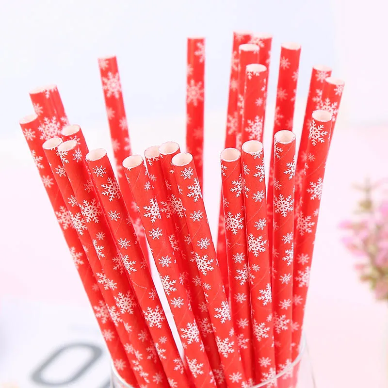 25 шт.компл. рождественские бумажные соломинки, снежинки, питьевая ...