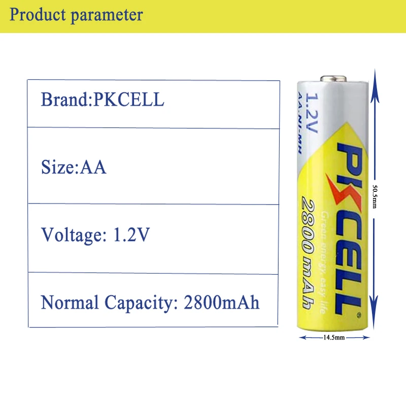 Аккумуляторы PKCELL, 1,2 в, 2800 мА ч, 2 А, 4 шт.