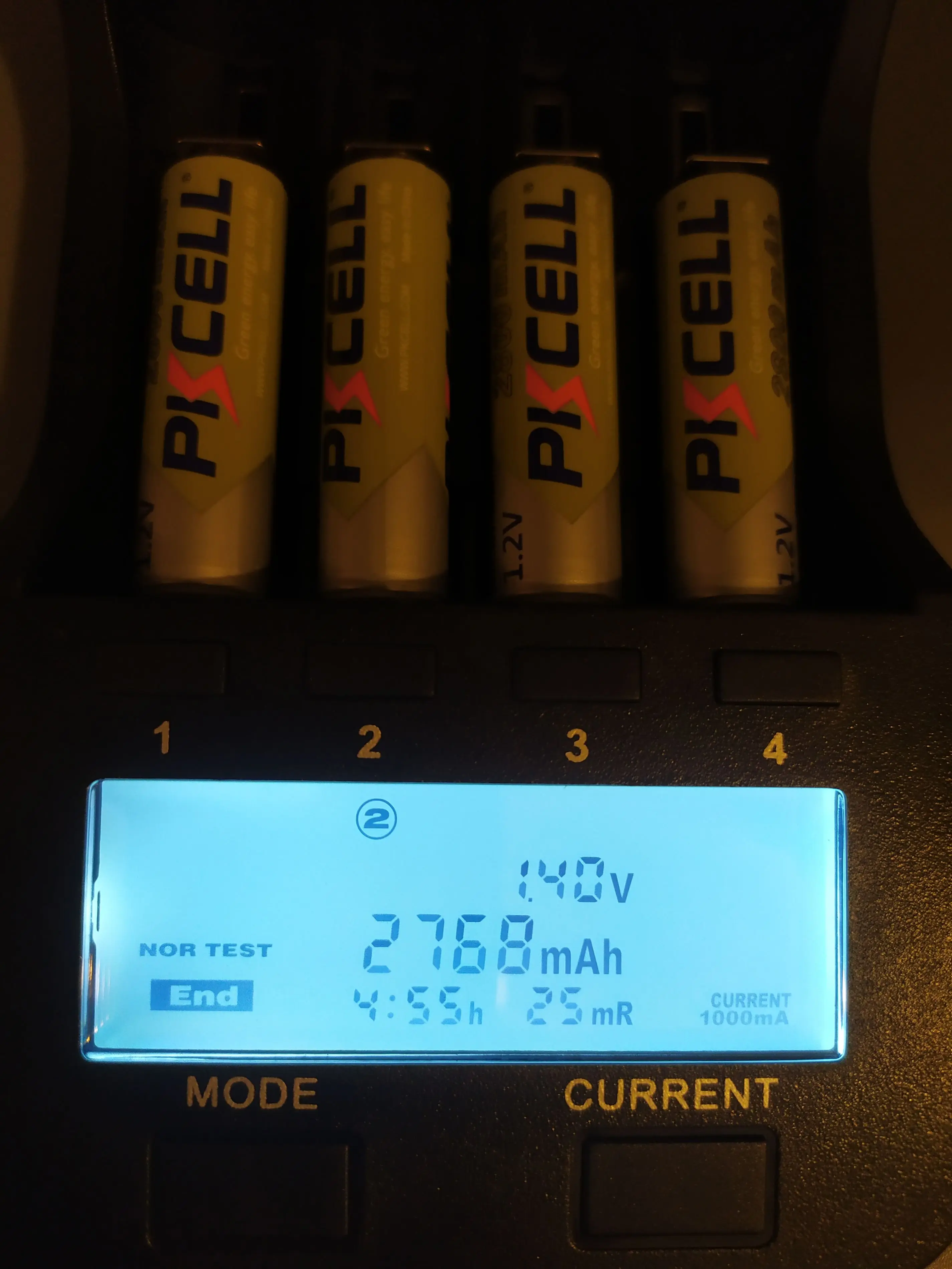 Емкость 4 батарей в районе 2500-2600мА. Посмотрим сколько прослужат, до этого зеленые PKCELL умерли за пол года при не частом использовании и соблюдении правил эксплуатации.