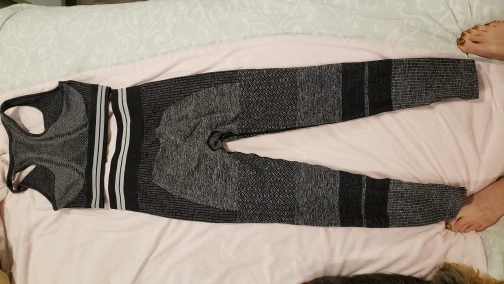 Материал был немного тоньше, чем ожидалось, но он очень хорошо сидит, и мне нравится то, что они не слишком длинные. Отлично подходит для йоги дома. Я заказал свой обычный размер, и он идеально подходит.