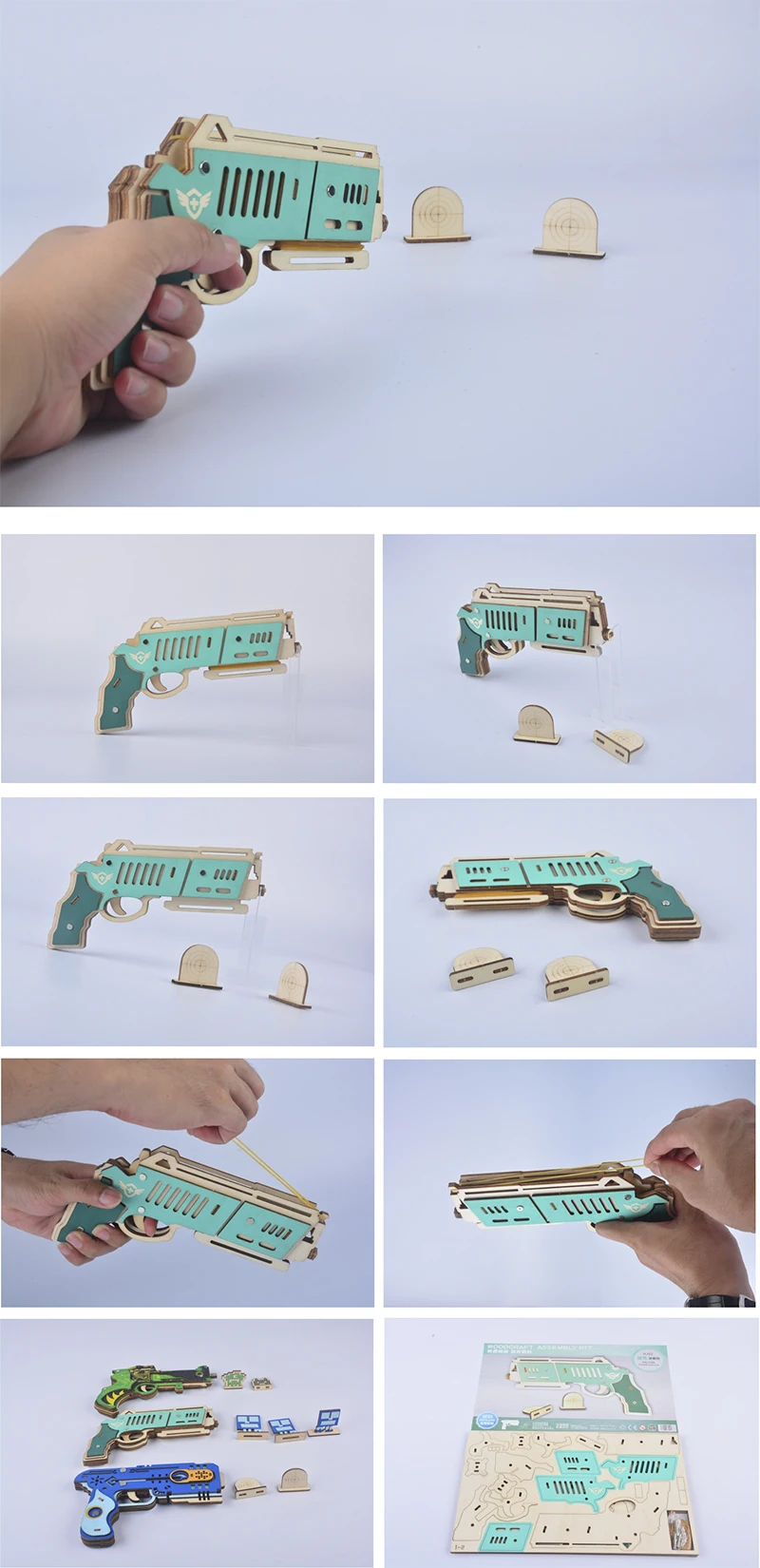 3D Деревянный револьвер-головоломка, Резиновая лента, пистолеты, сделай сам, ручная сборка, пистолет, развивающие игрушки для детей, мальчиков, подростков, на открытом воздухе, игра, подарок