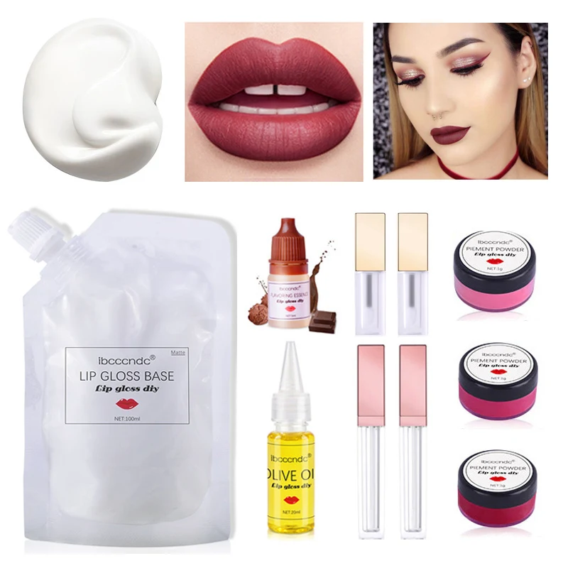Матовый блеск для губ DIY Набор матовый цветной Блеск для губ основа гель пигмент порошок блеск для губ трубка оливковое масло Ftagrance эссенция