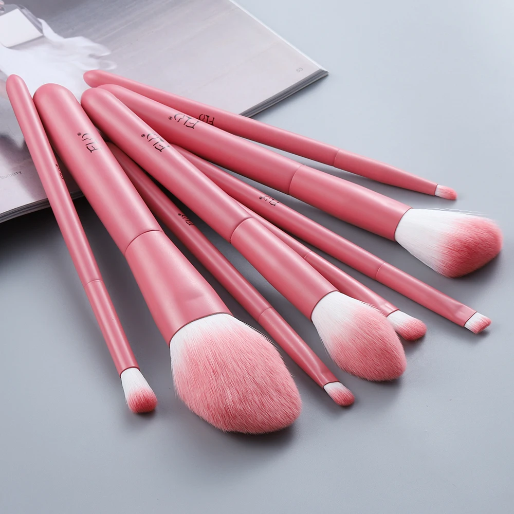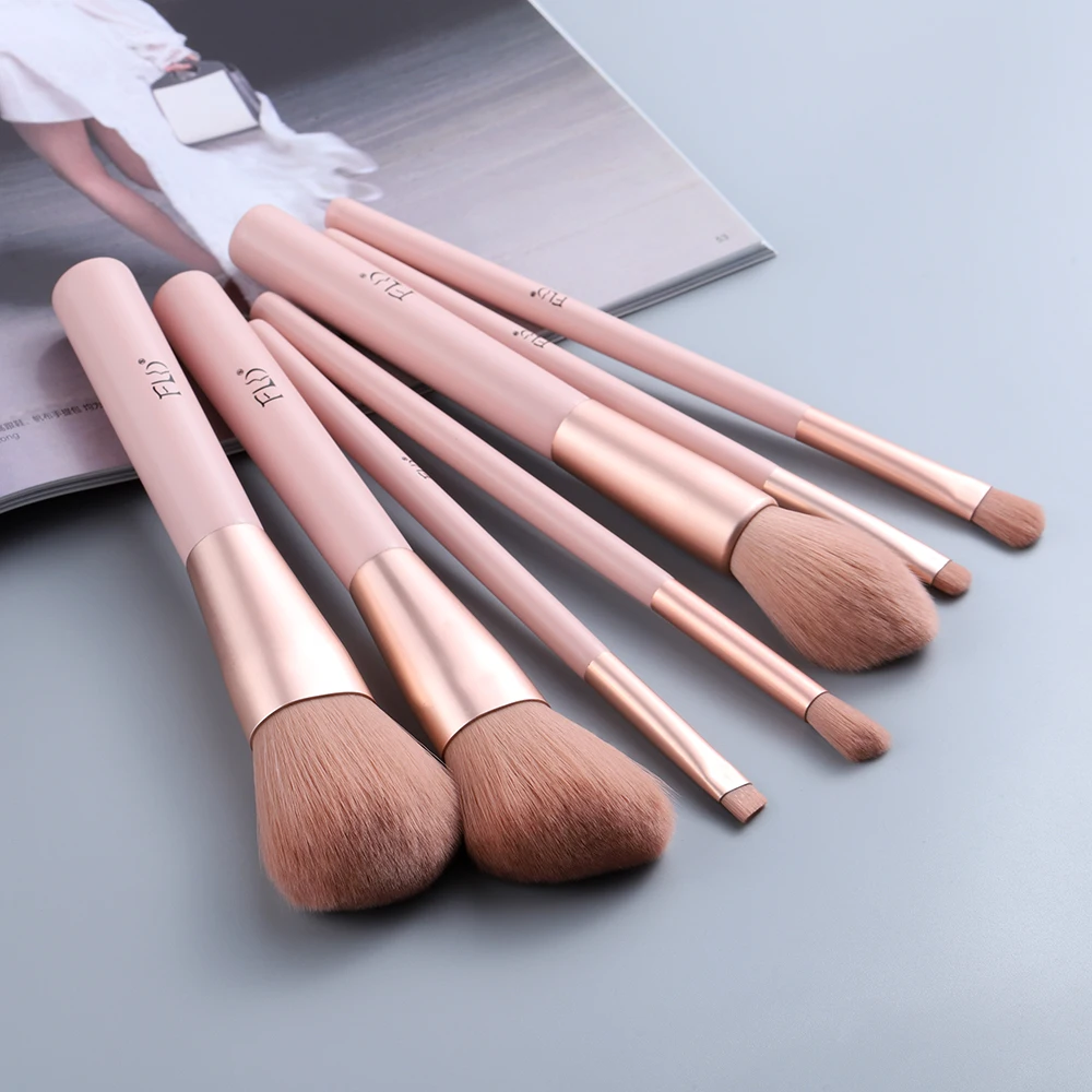 FLD деревянная ручка для лица, глаз, губ, розовый набор кистей для макияжа, пудры, теней, бровей, ресниц, кисти для макияжа, сумка