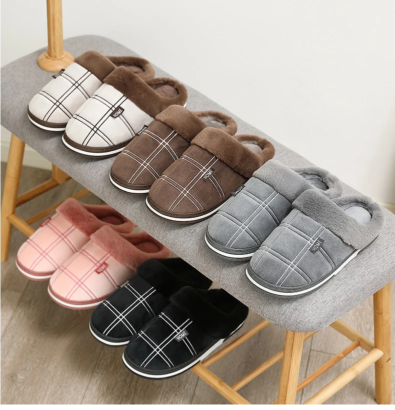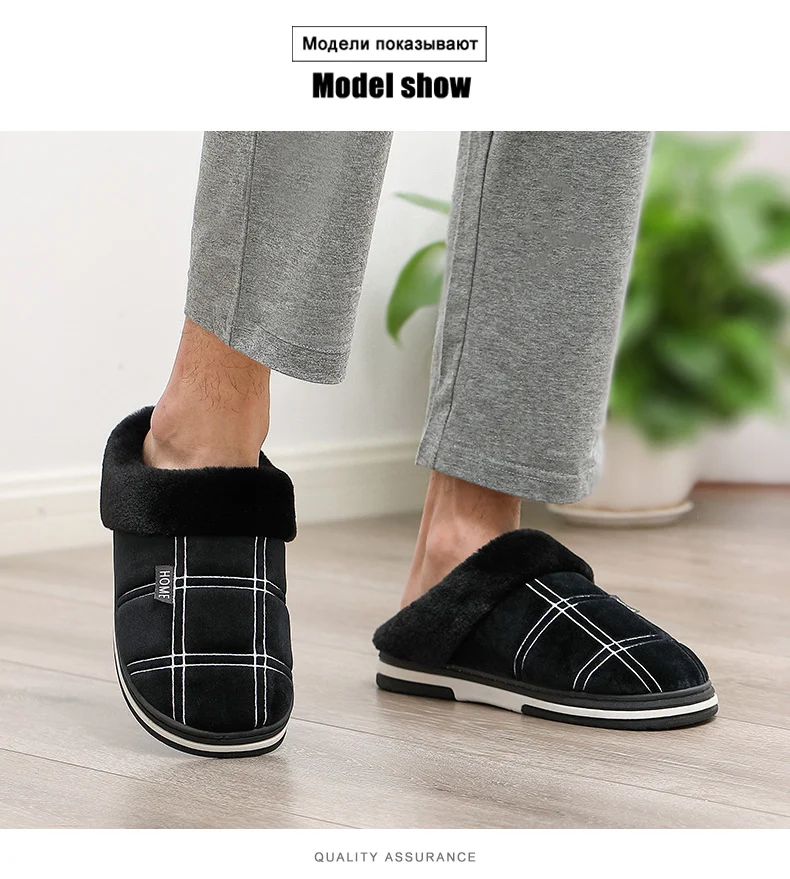 Мужские тапочки; Зимние тканевые бархатные домашние тапочки в полоску; Мягкие Нескользящие домашние тапочки; Мужская домашняя обувь на прочной подошве; Большие размеры 47